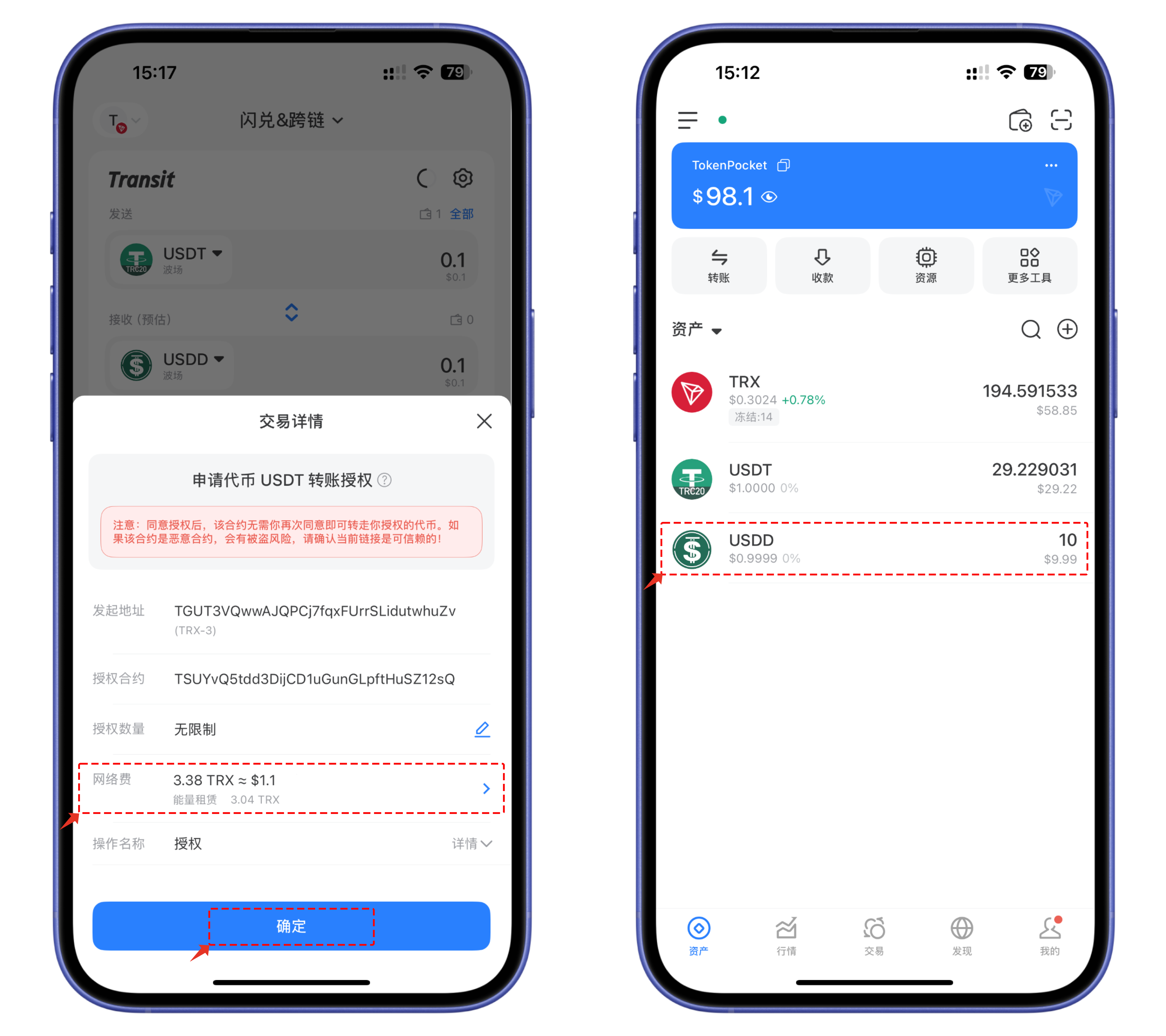 *<mark style="color:blue;">**USDD 网络费代付功能，在 iOS 和 安卓新版本（2.8.0或以上版本）开始支持，如果不是最新版本，建议更新到最新。**</mark>*