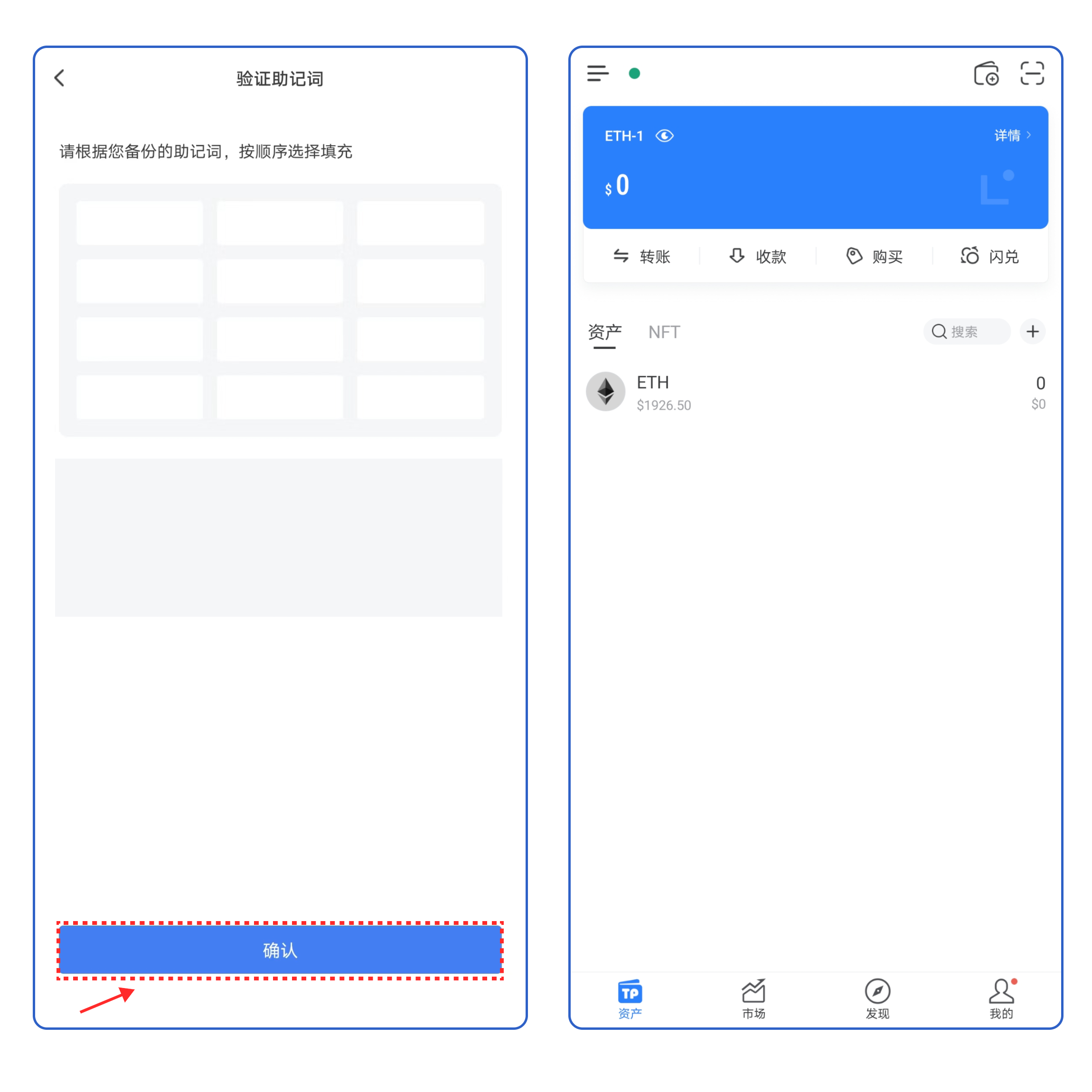 <mark style="color:red;">**注意：请勿将助记词和私钥透露给任何人！**</mark>