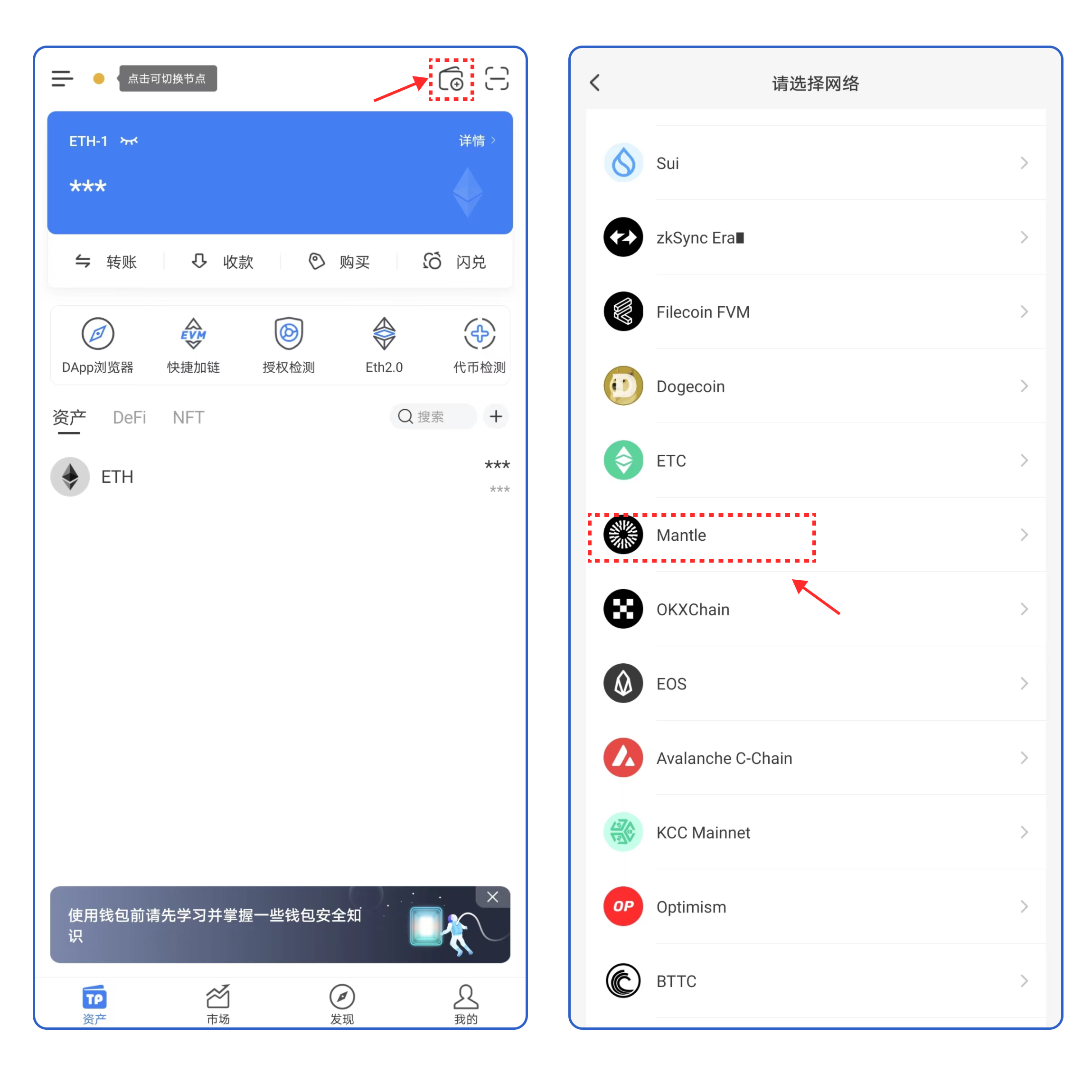 ## <mark style="color:orange;">如何在TokenPocket上创建Mantle钱包？</mark>