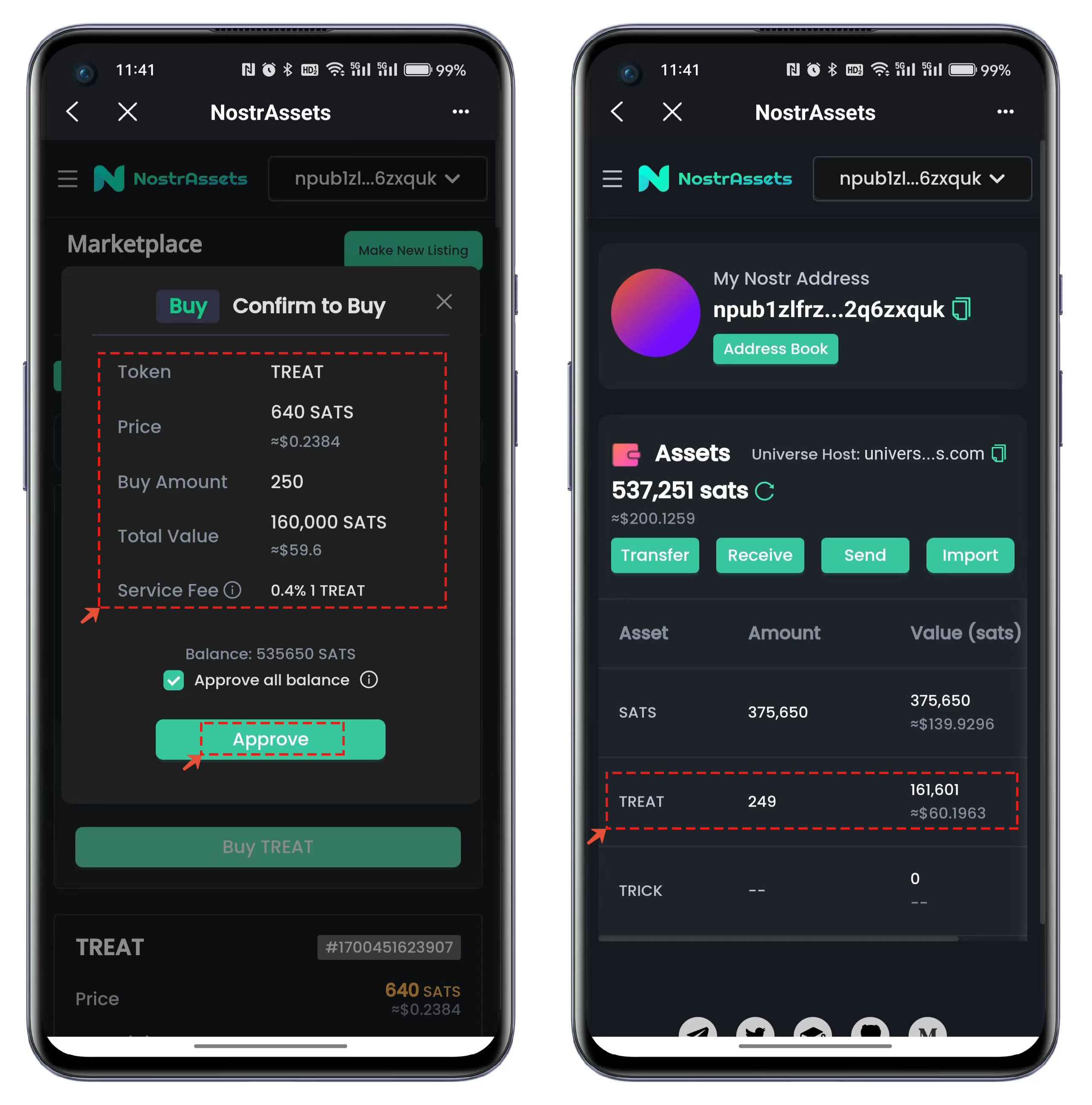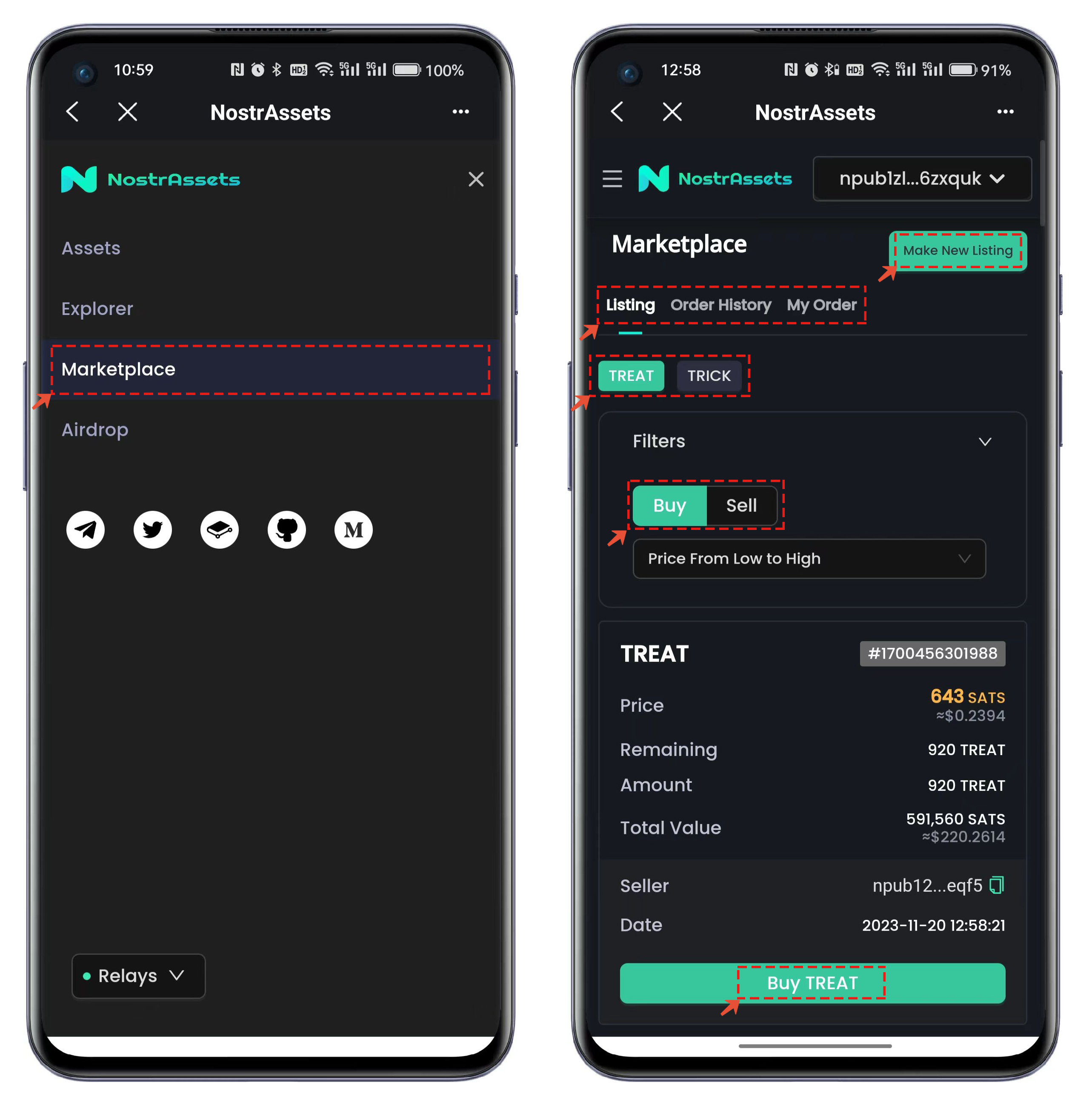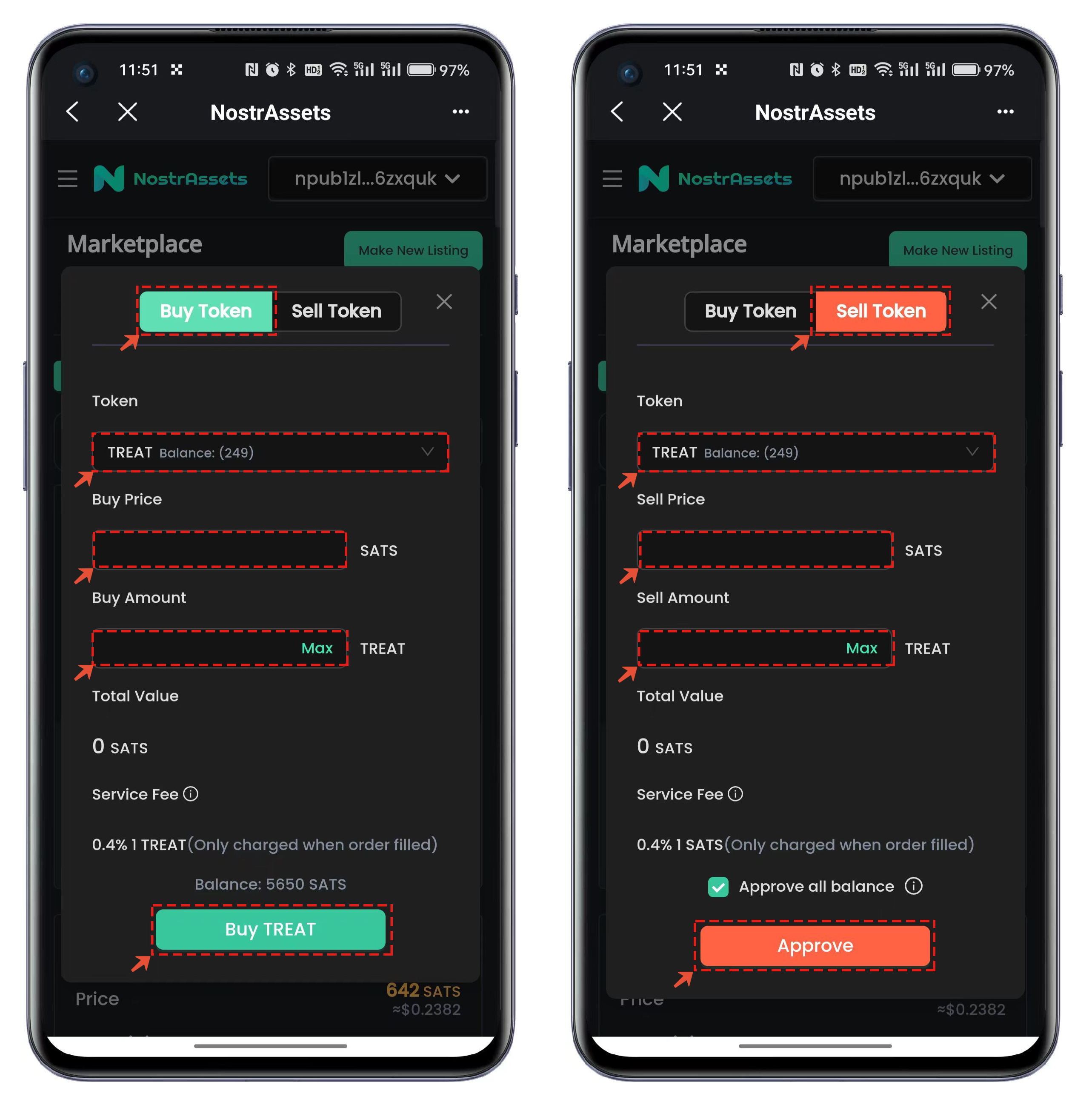 例如我们选择【TREAT】并选择列表中的【Buy TREAT】