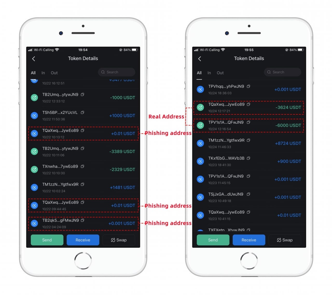 Recently, the TokenPocket technical team find a new kind of scam, which we named it “phishing” address.