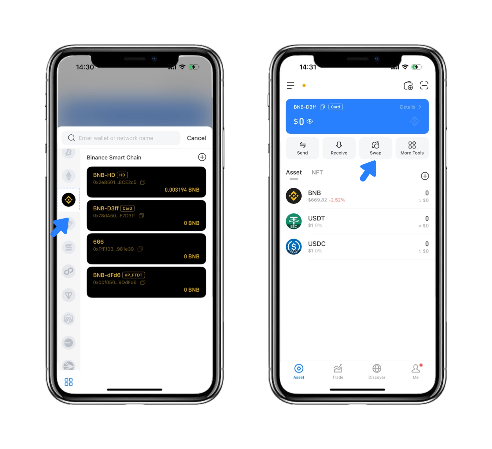 1. Select the  BSC Chain and click \[Swap].