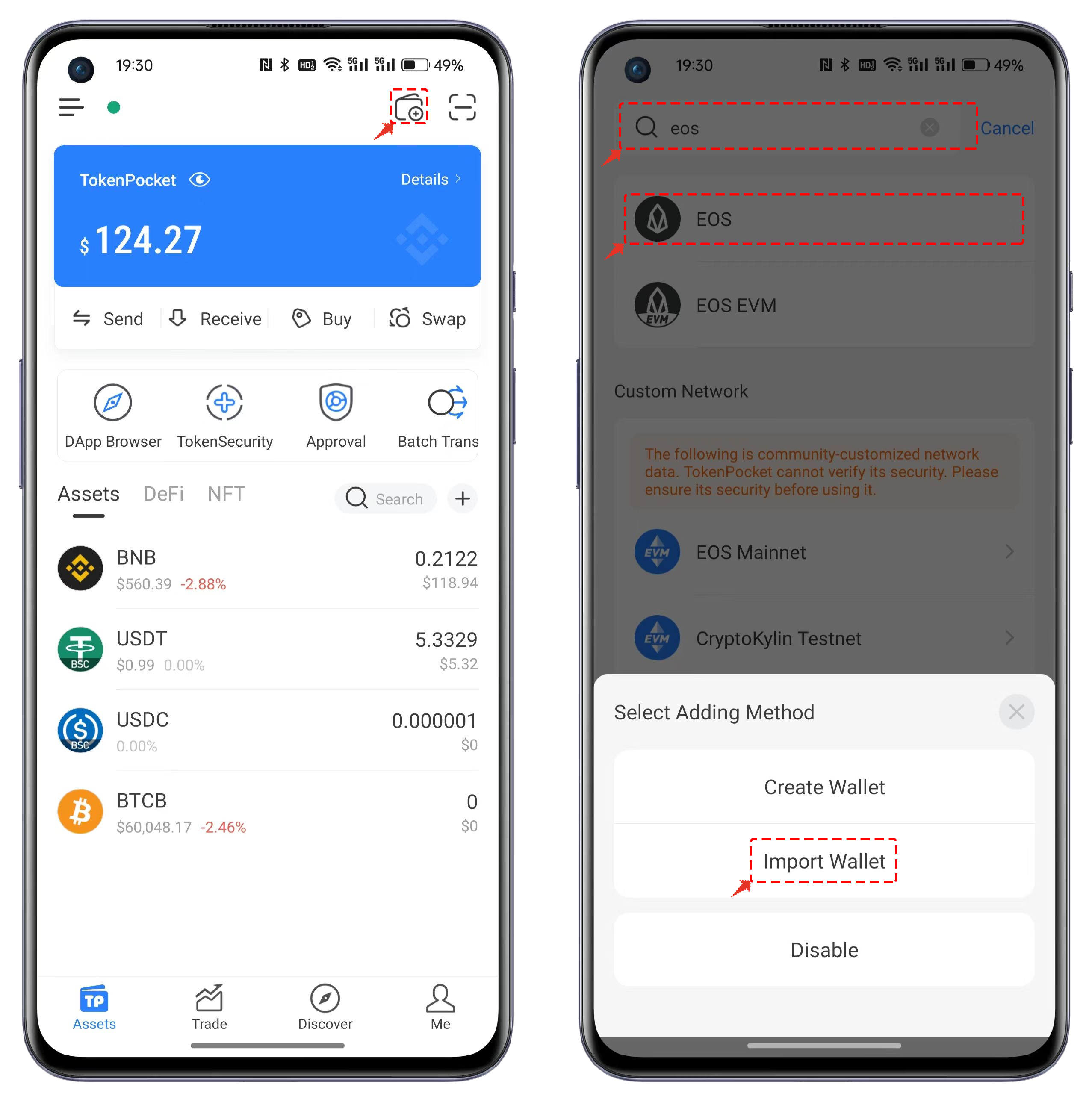 ### <mark style="color:blue;">Importing an EOS Account in TokenPocket</mark>&#x20;