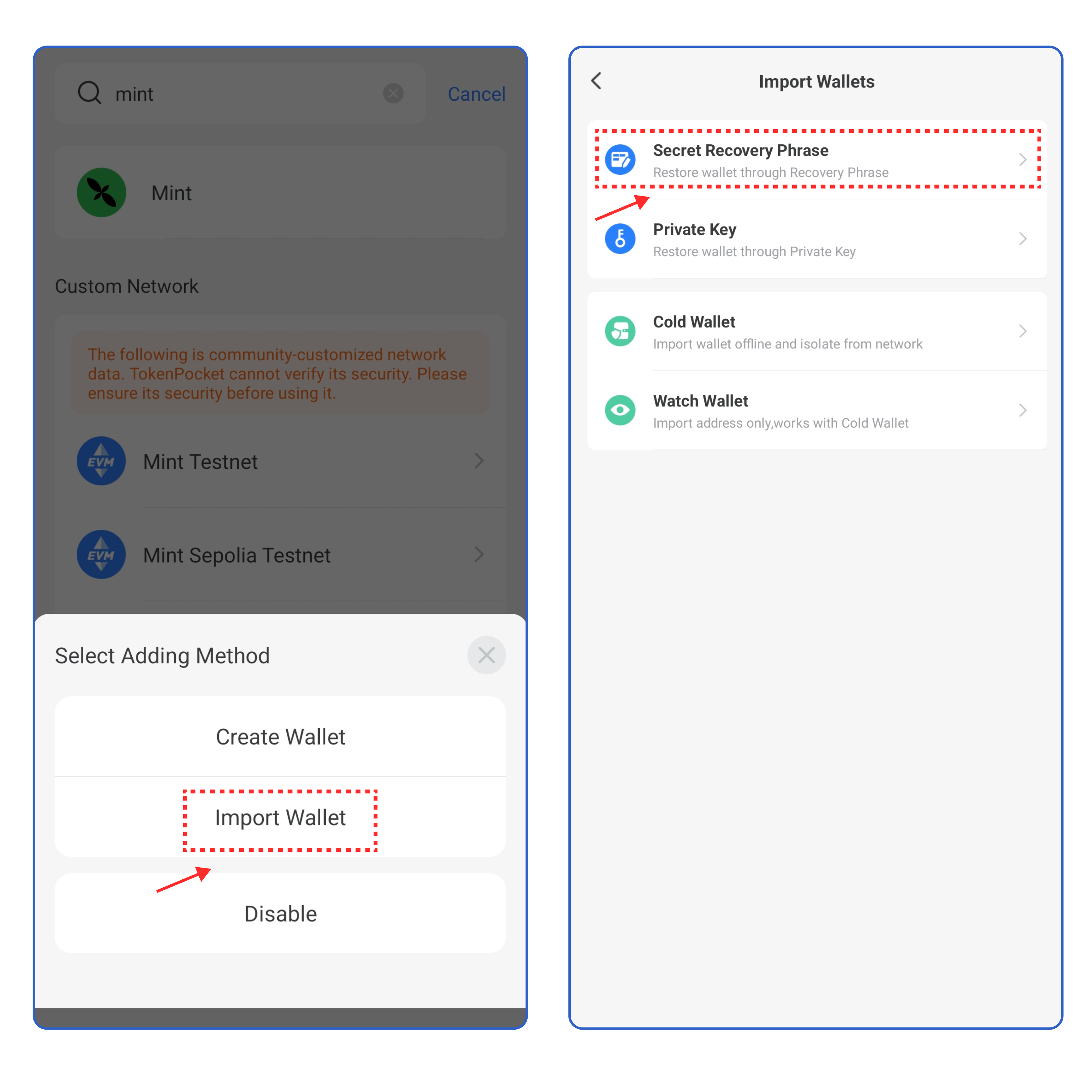## **How to import a Mint wallet into TokenPocket?** <a href="#how-to-import-an-etc-wallet-into-tokenpocket" id="how-to-import-an-etc-wallet-into-tokenpocket"></a>