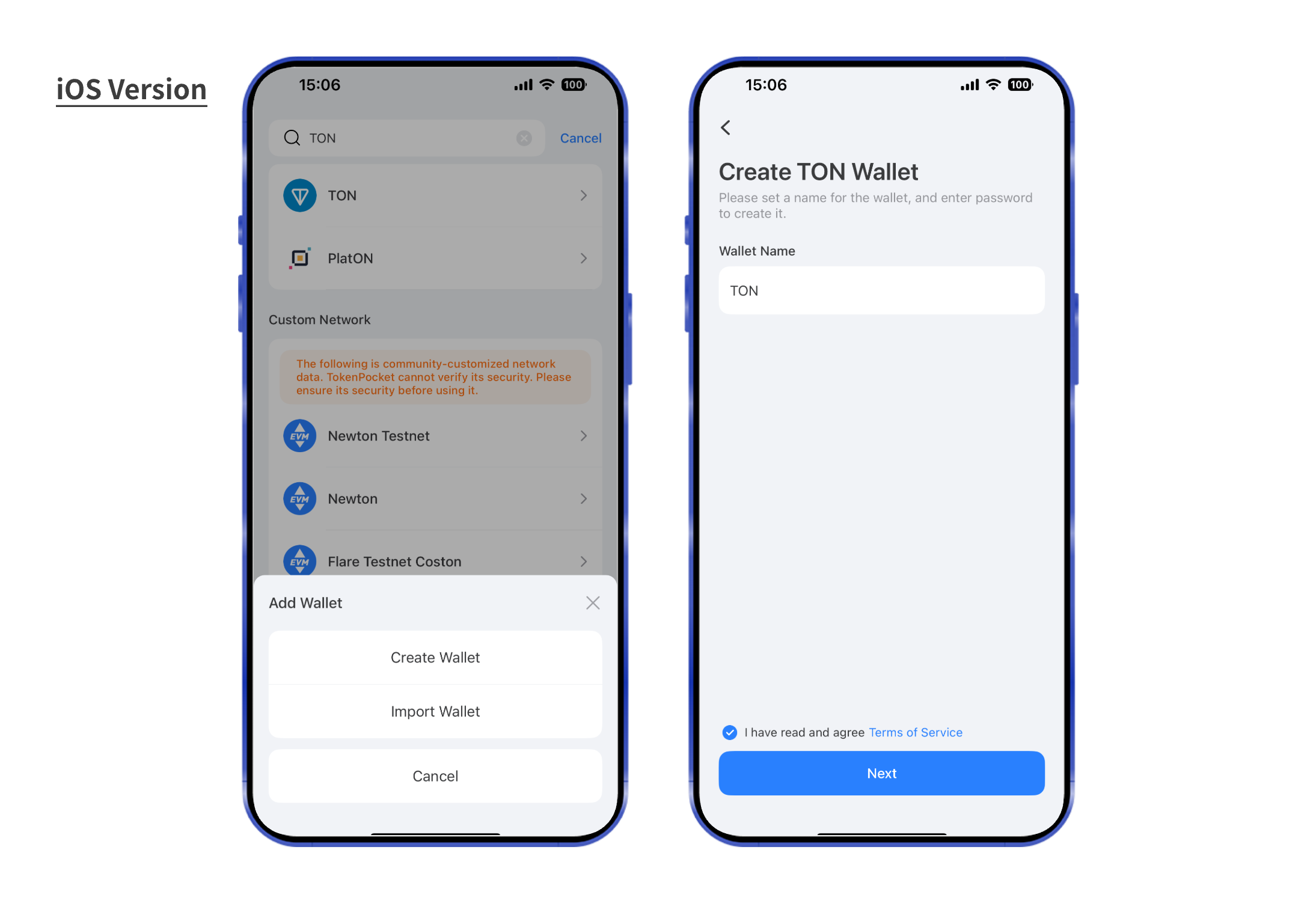 <mark style="color:purple;">>iOS Version.</mark> Click **\[Create Wallet]**, then set your wallet name.