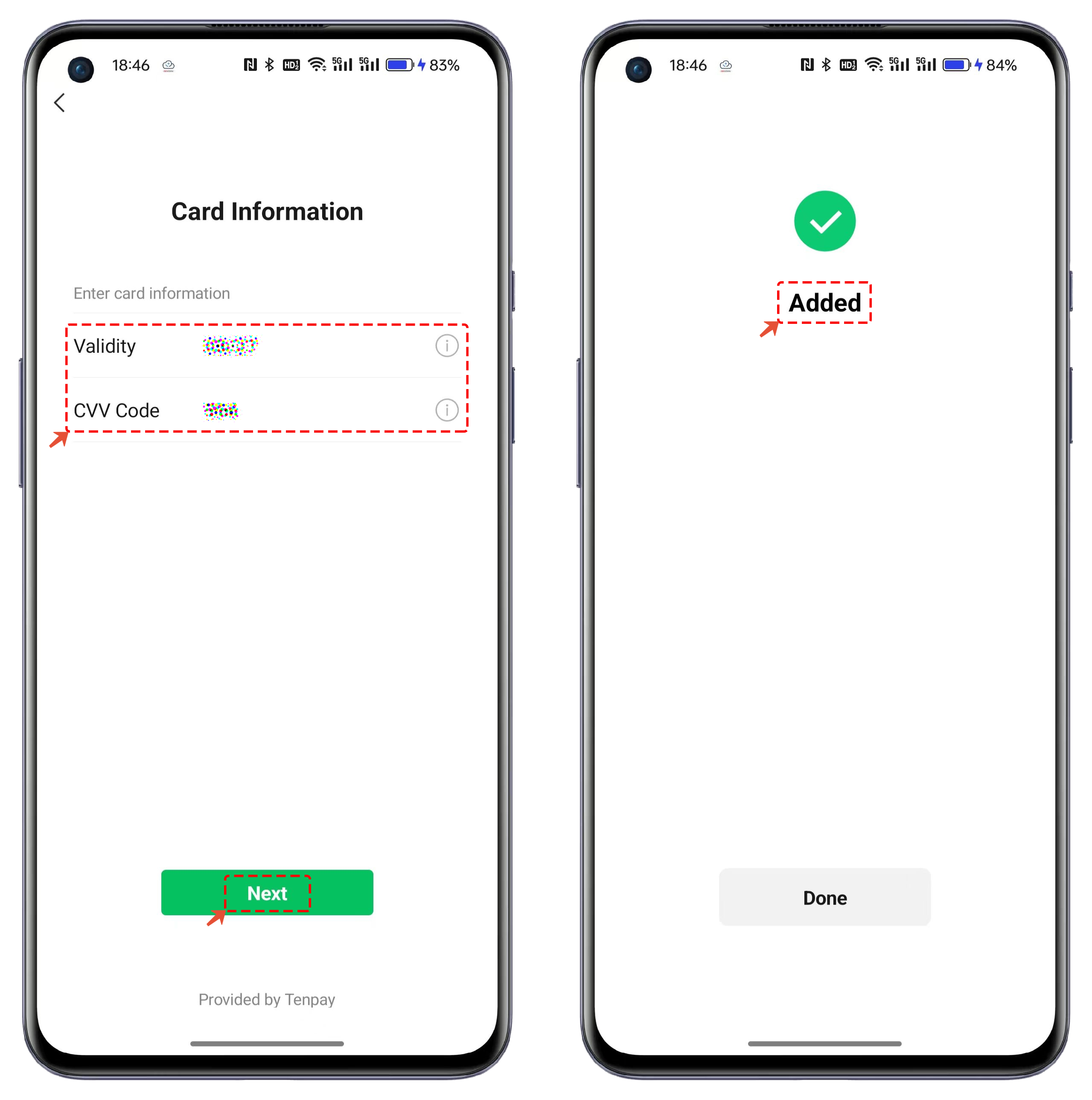 4. After entering the expiration date and security code, click Next. Once the verification is complete, you will see a confirmation message that the card has been successfully added.