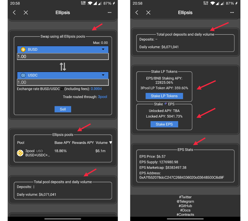 Ellipsis is primarily an inter-stable currency exchange with the advantages of low transaction slippage, high yields and single currency access.
