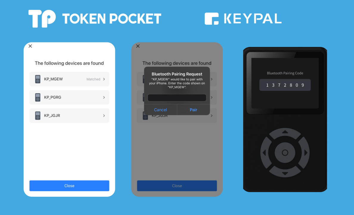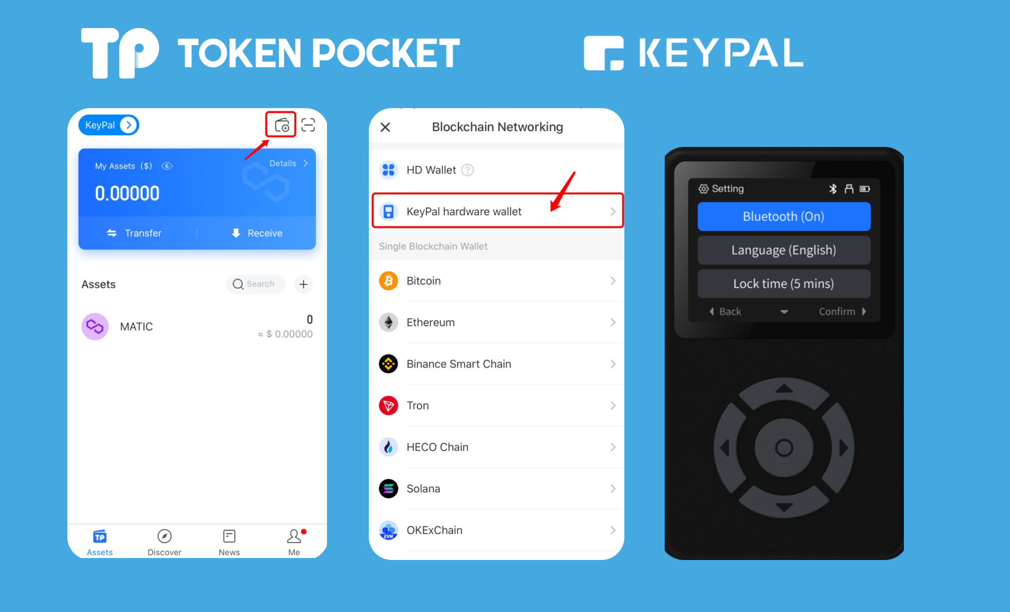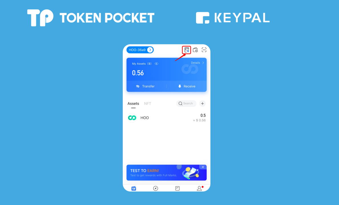 After the device is successfully connected, the KeyPal Bluetooth connection pattern will be displayed in the upper right corner of the TokenPocket wallet.