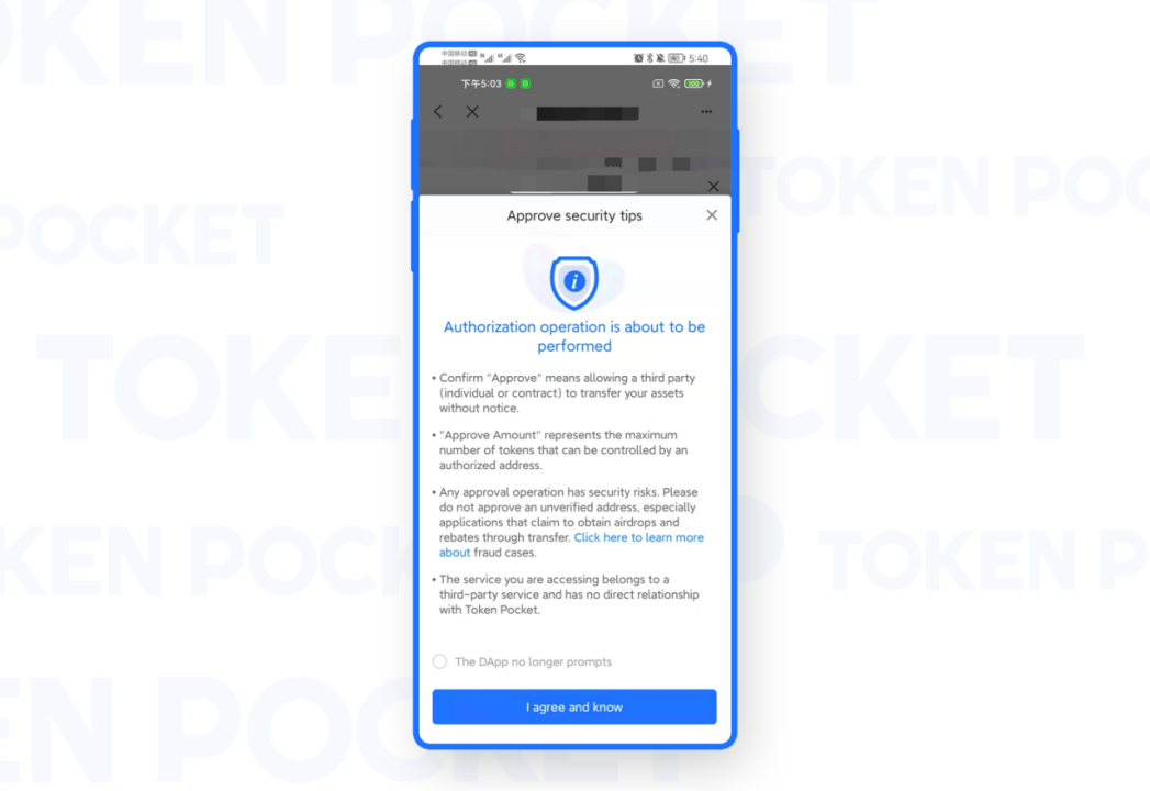 When a DApp/contract address for Approve, TokenPocket will remind you with a reminder page.