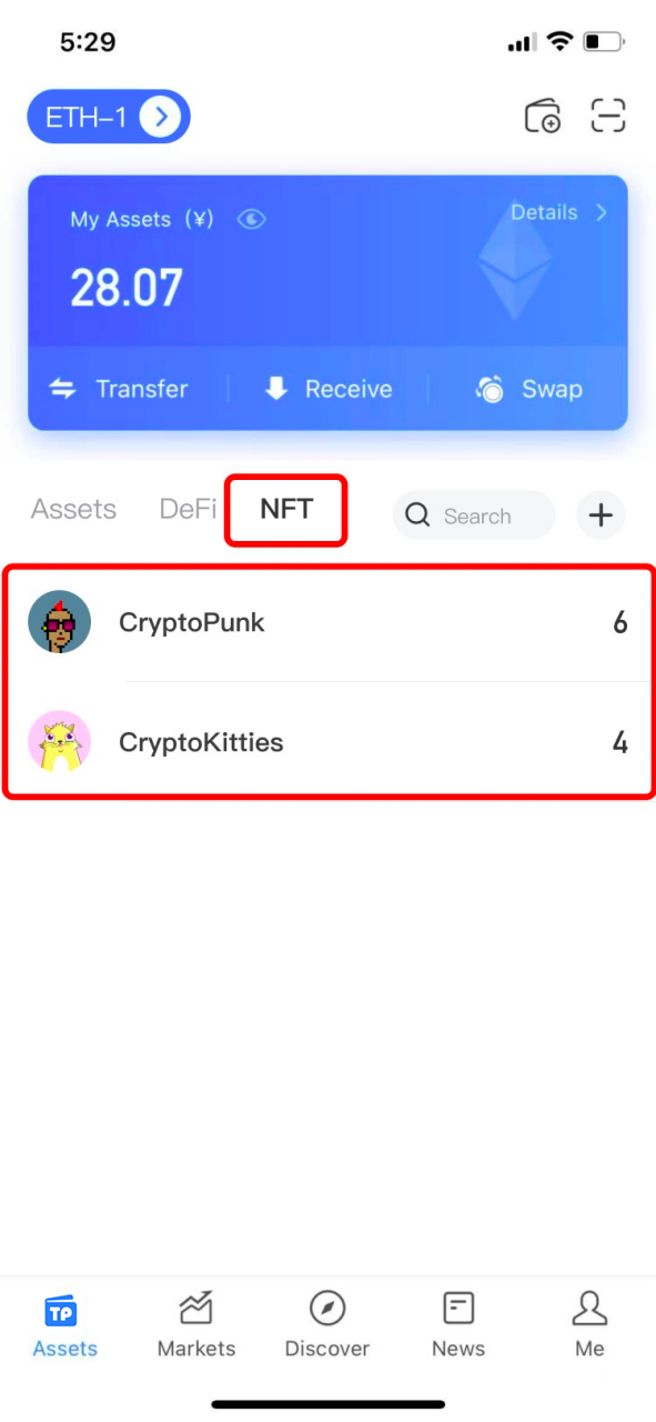 1. Open the TokenPocket APP, enter the page of [Assets], click [NFT], enter the page of [NFT Details];
