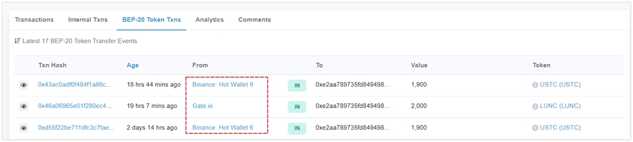 Recently, we received feedback from the users that they’ve received the airdropped tokens from the exchange. Attention, the type of this transaction is to imitate the exchanges’ transfer label. When users received this token and try to transfer or swap it, they found that there are some problems with the token, such as the situation that the token can be bought but cannot be sold, etc. The TokenPocket security department has analyzed the on-chain information and we found that it is a new type of token transfer scam. The scammers forge transaction records of transfers between arbitrary addresses by using the browser or wallet to parse the transfer transaction records. This falsification of transaction records can only be done against tokens issued by scammers but they can forge the mainstream tokens.