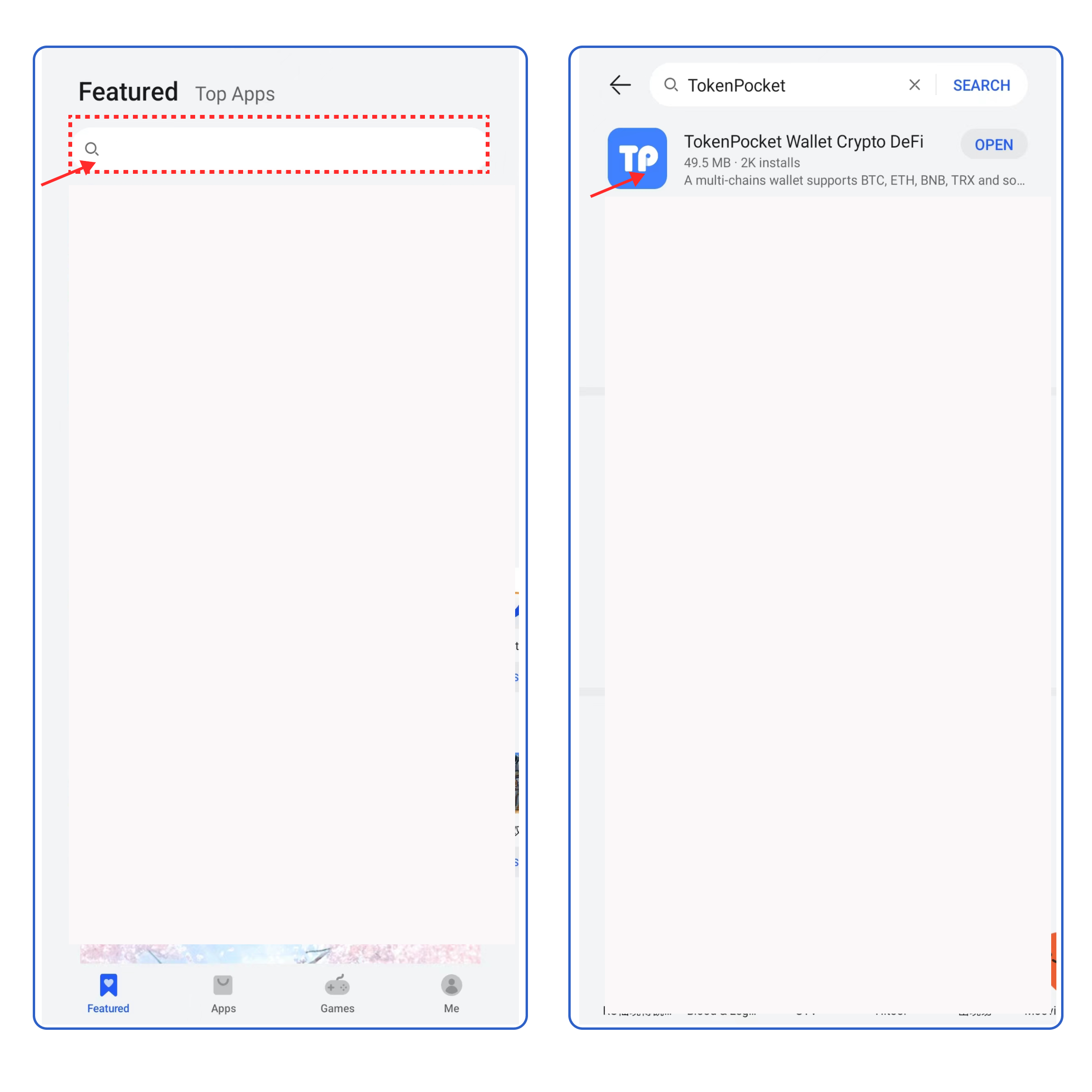 Open and log in to your Huawei Gallery. Search “TokenPocket” and see the results.
