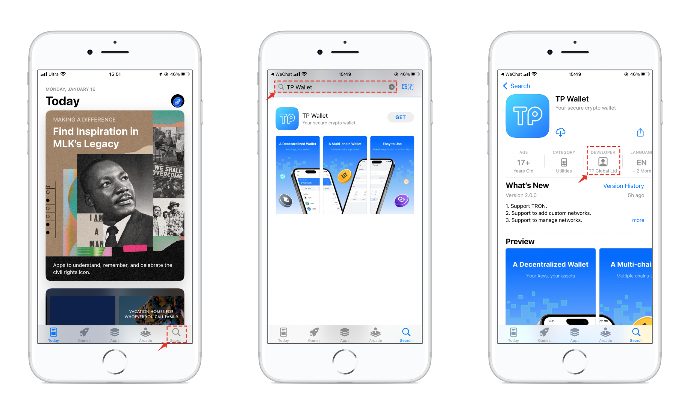 Open and log in to your App Store. Search “ TP Wallet ” and see the results. The result in the second one (second is just current rank) is the right TokenPocket. Click to see the details. In the details interface, if you saw the “ TP Global Ltd ”, then it is the right “TokenPocket”.