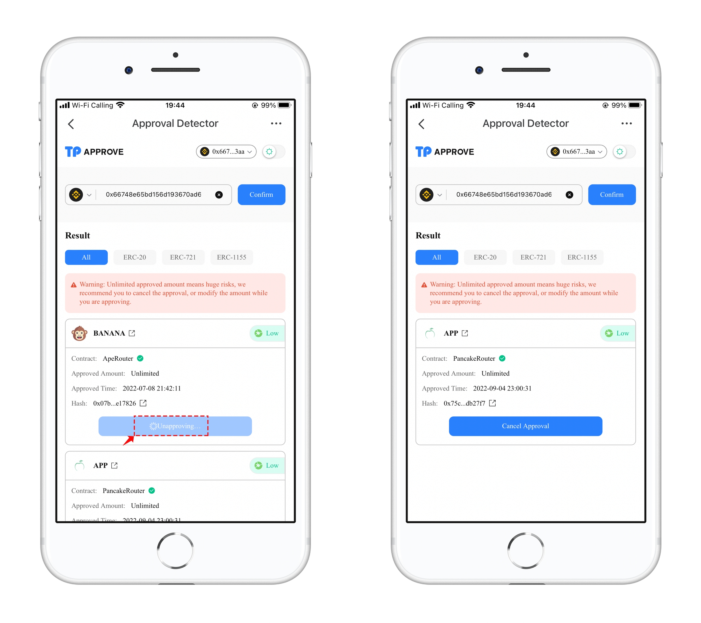 4. After you confirmed the transaction, you will see the [Unapproving] reminder, when the data execution is completed, the a will be automatically cleared.
