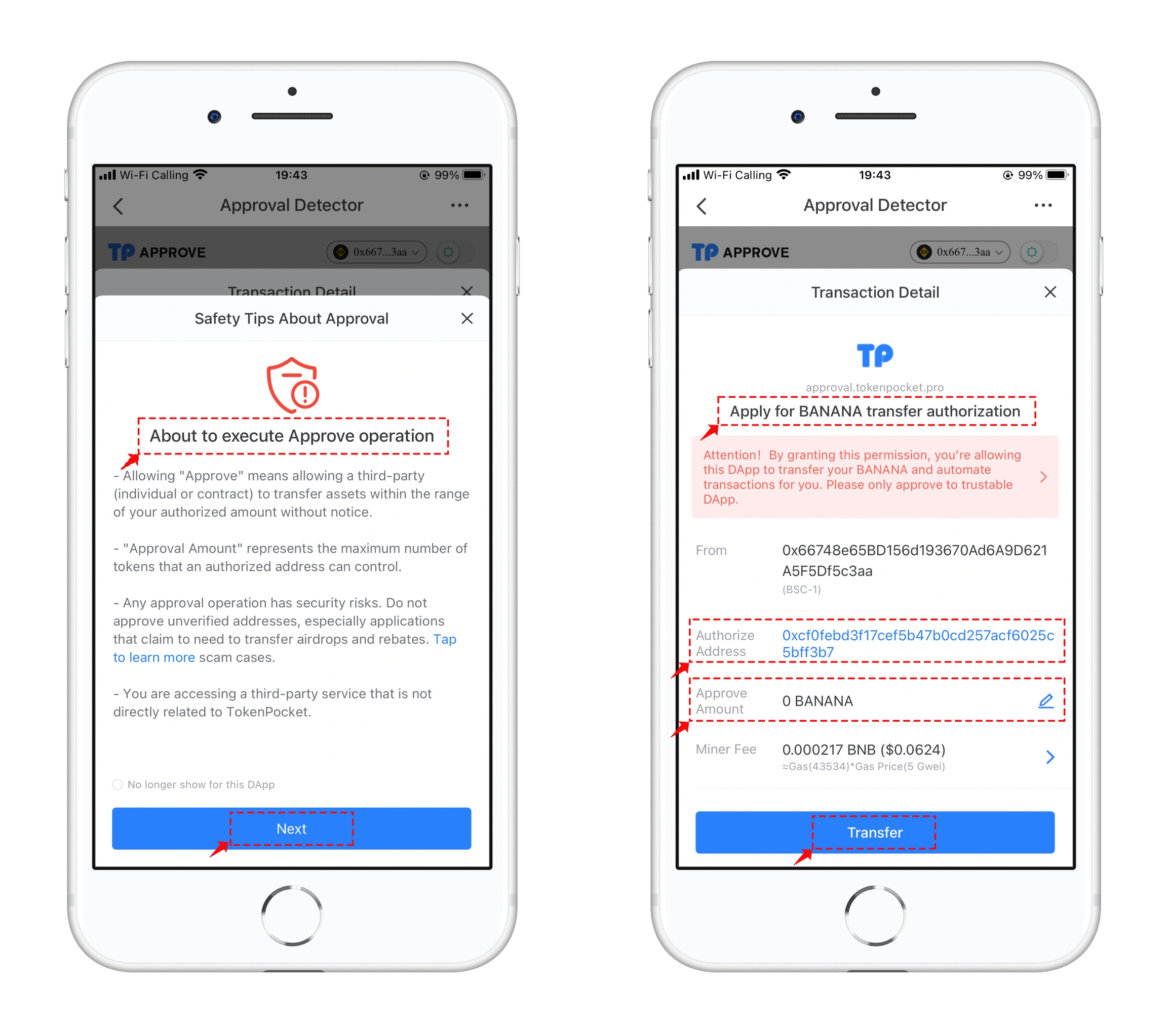 3. When you click [Cancel Approval], a reminder of executing the approval operation will pop up. Click [Next], and click [Transfer].