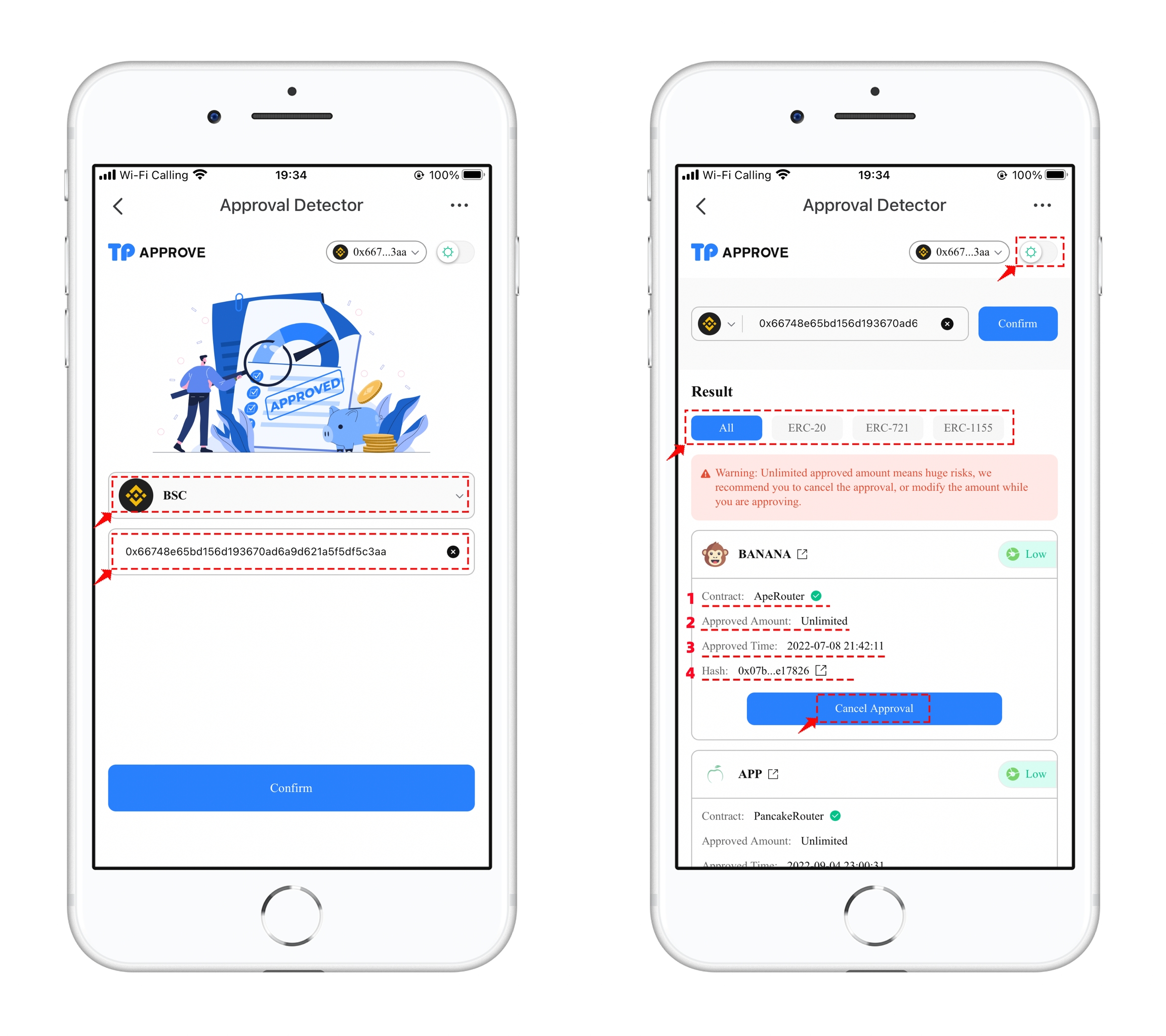 Approval Detector now supports querying the tokens and NFTs' approvals, you can also switch to the dark mode.