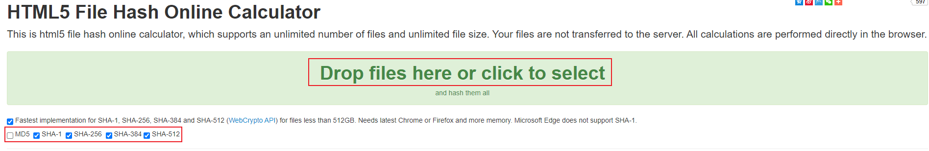 Tool 2: Open the link http://www.metools.info/code/c92.html, select the file and hash algorithm, click “Calculate”, and you can view the result in the “result”.