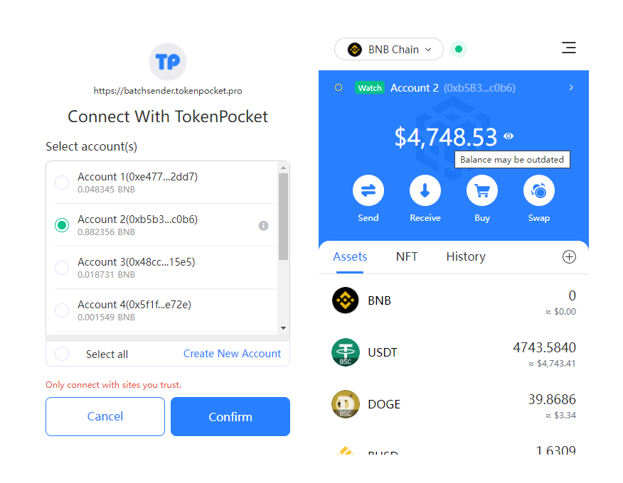 TokenPocket Multi-chain Token Batch sender