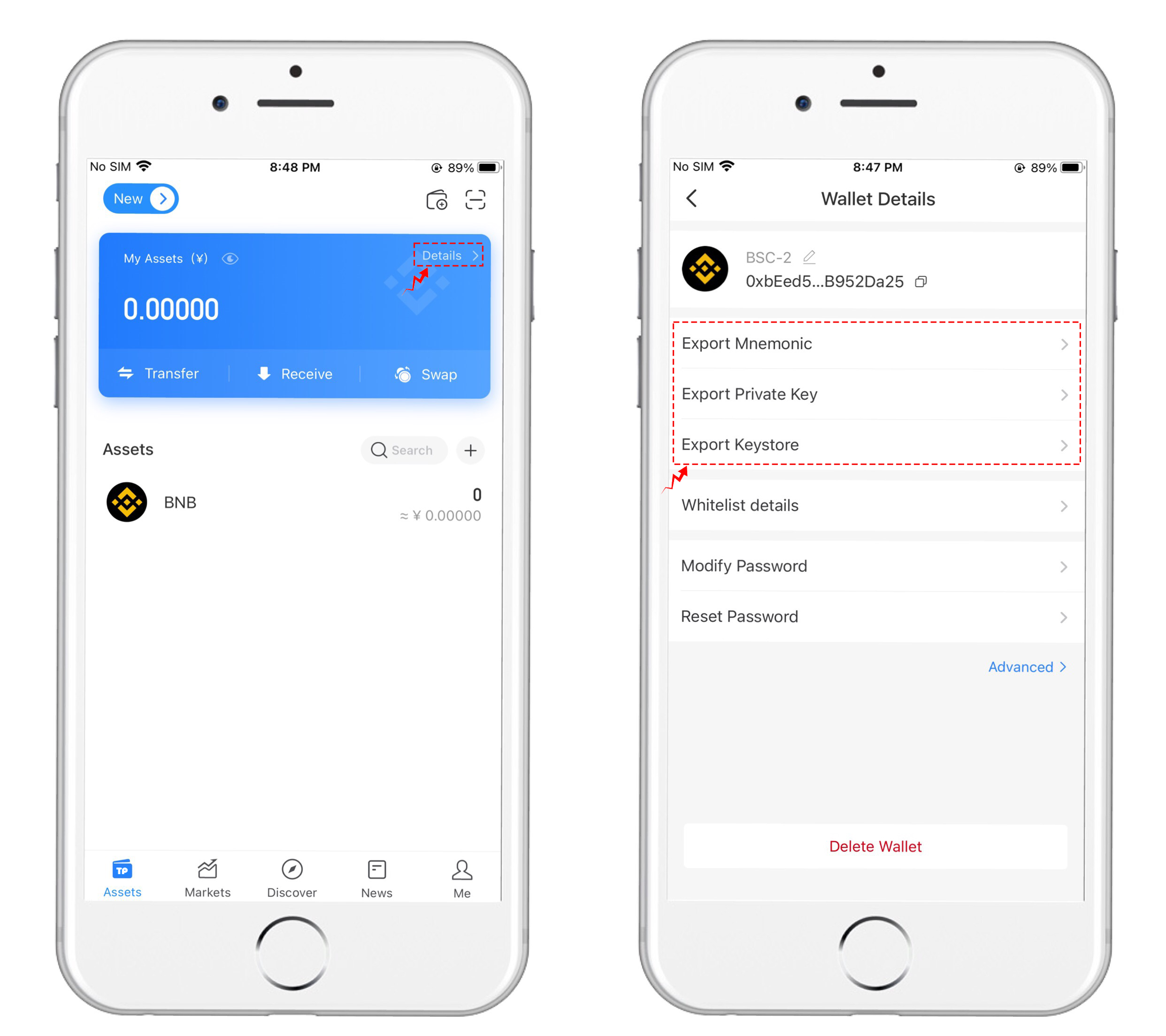 Export "key" on Binance smart chain wallet