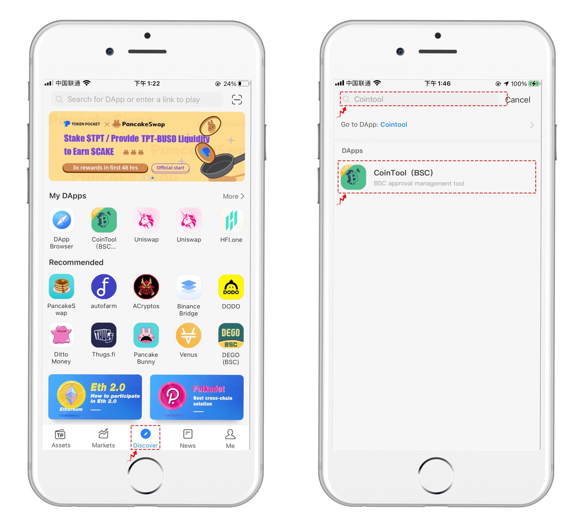 Open the TP wallet, click [Discover], search for [Cointool] at the top and select the tool to open the BSC chain.