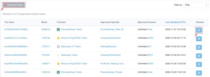 The DApp used in the above tutorial is a three-party application. If you are more picky about using DApp, you can choose to use the official authorization management tool provided by the BSC browser. First, I will provide you with a simple display: