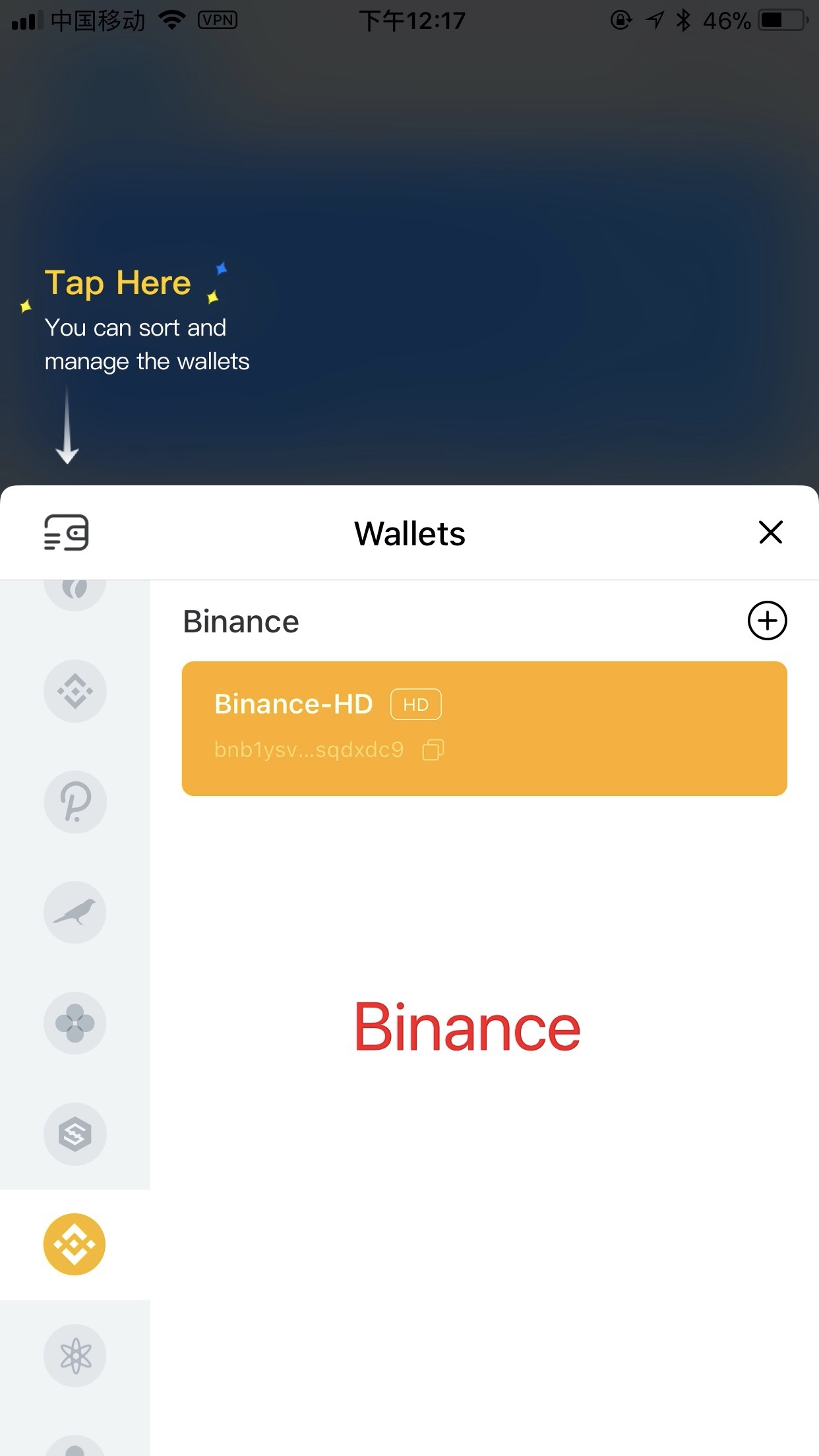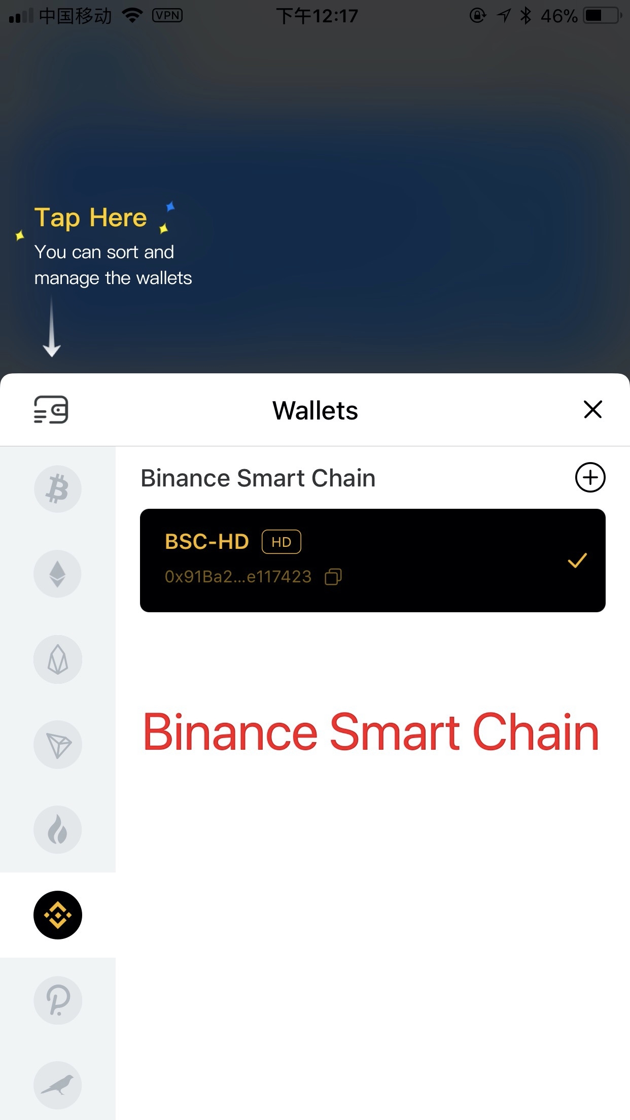 The following figure is the screenshot of the Binance chain and the Binance smart chain in the TP wallet. Please pay attention when withdrawing coins and copy the correct wallet address.