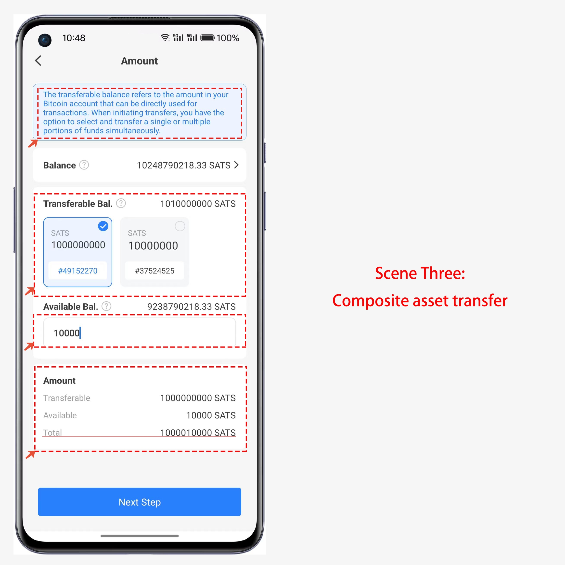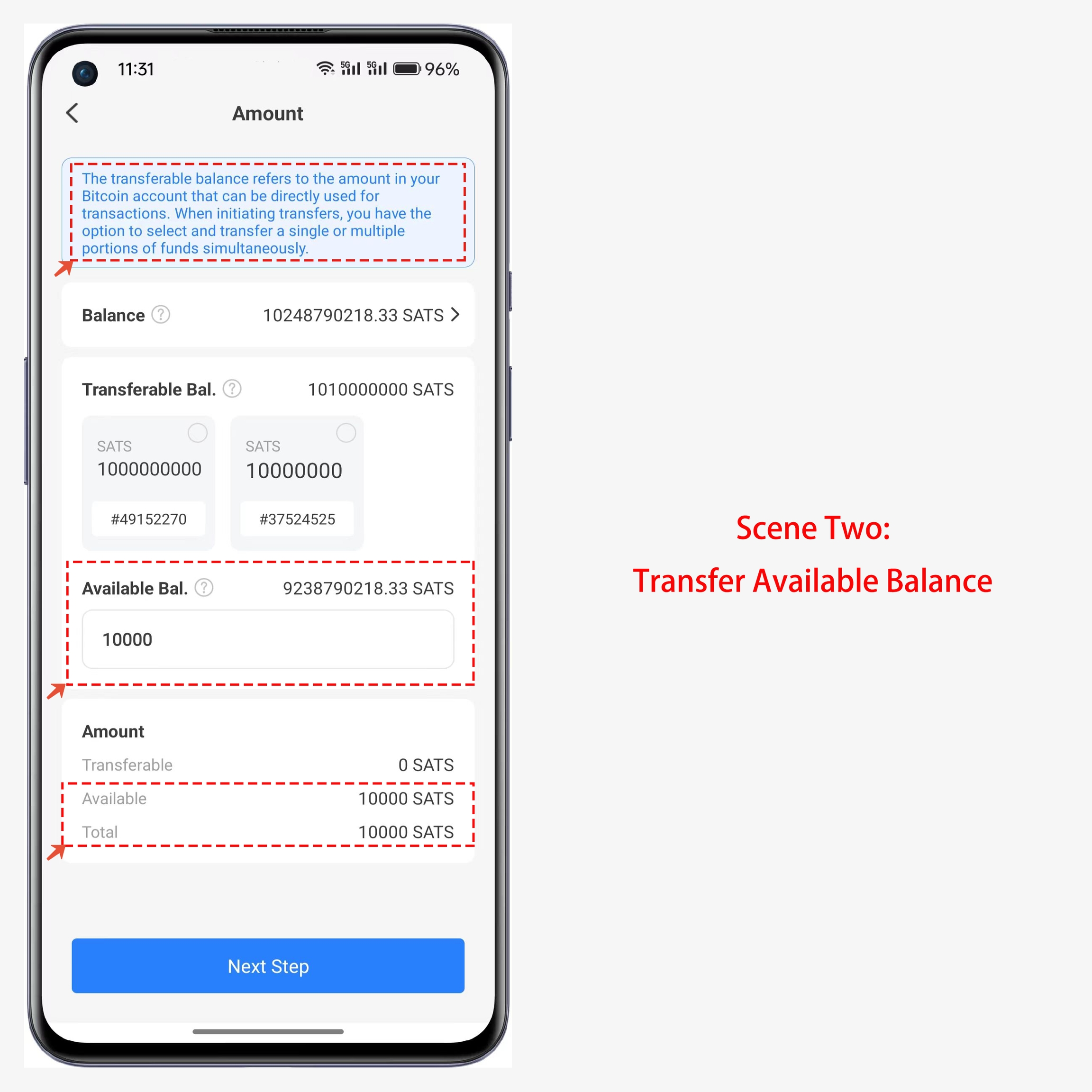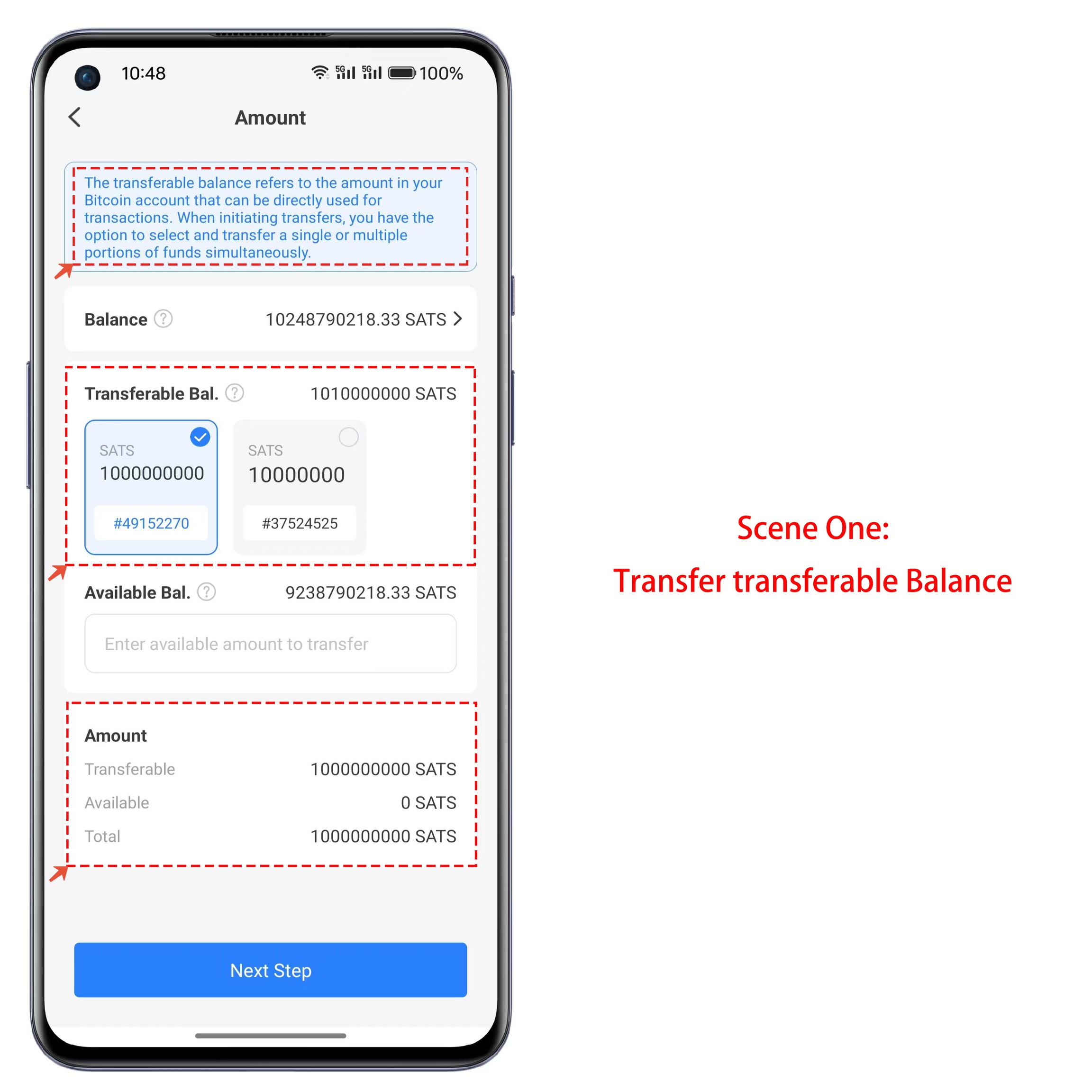 In the "Transfer Amount" interface, you can see the "Available Balance" option, representing assets that have not been engraved. If you want to transfer these assets to someone else, you only need to set the quantity in the amount field. The corresponding parameters will change at the bottom in the "Transfer Amount" section. After that, proceed to the next step, select the recipient address, set an appropriate miner fee, and you can complete the transfer.