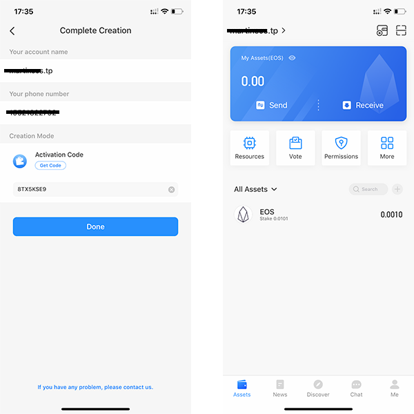 Confirm your account name and phone number, then tap [Get Code] to purchase the activation code. Once complete, your account will be activated on the main net.