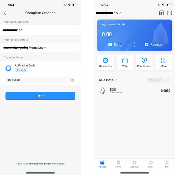 Confirm your account name and email address, then tap [Get Code] to purchase the activation code. Once complete, your account will be activated on the main net.