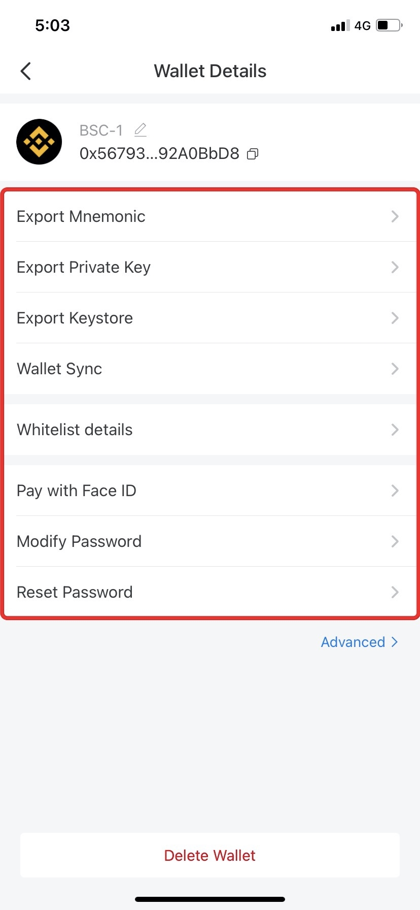 Attention: If you need to delete your wallet, please make sure that you've already backed up your mnemonic/private key, otherwise, your assets will be lost.