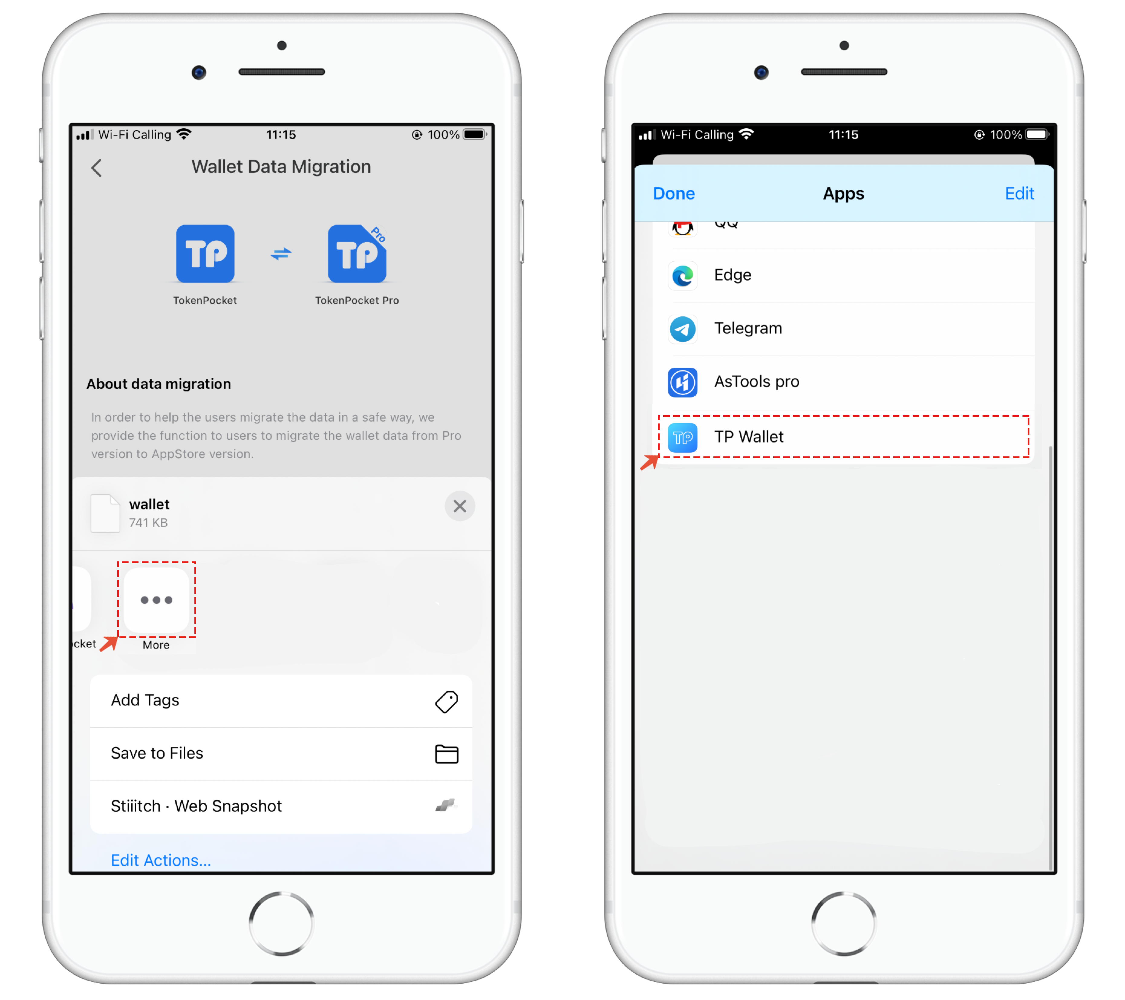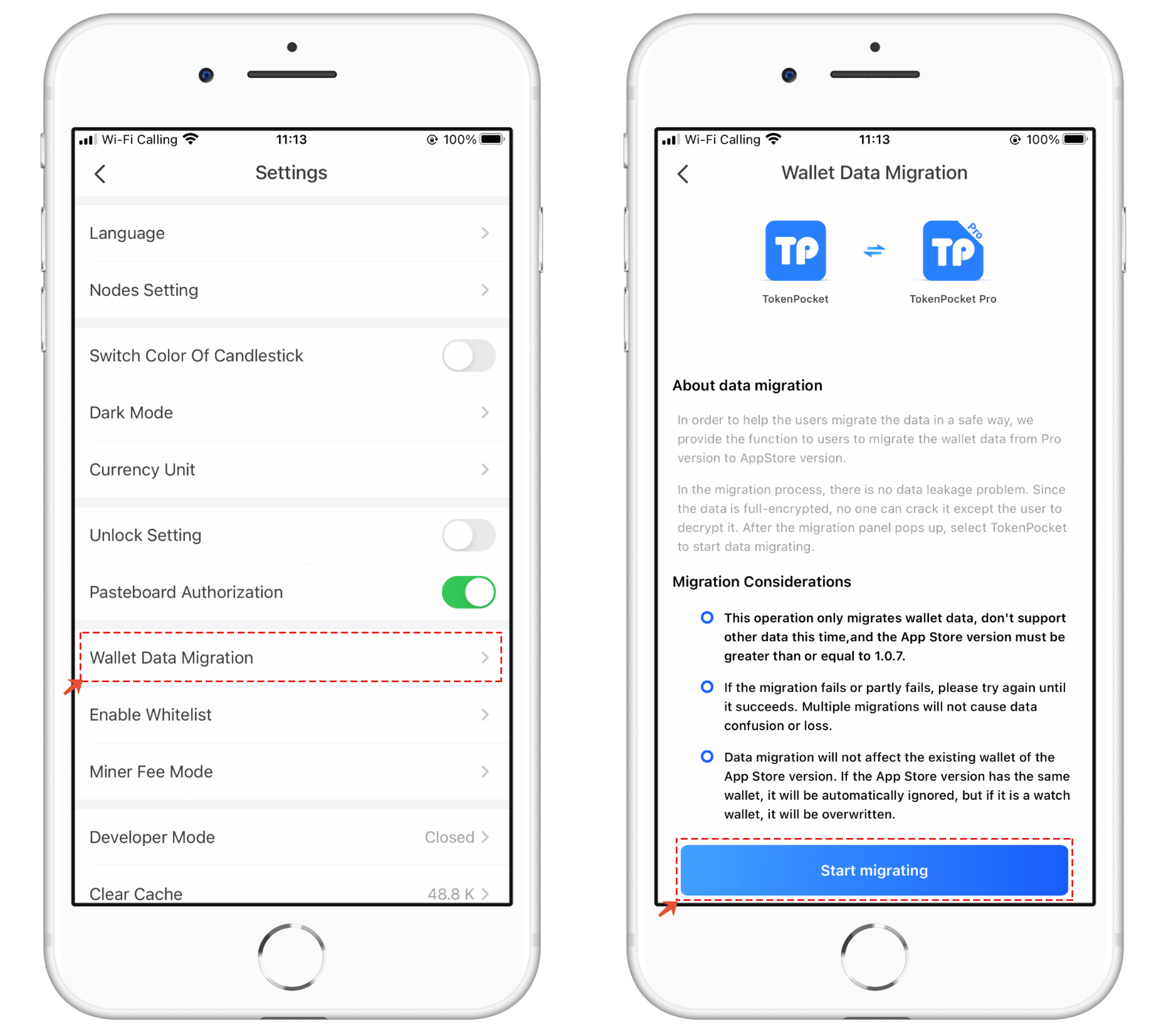 ### <mark style="color:orange;">Migrating data from the old version of TokenPocket to the new version on the same device.</mark>