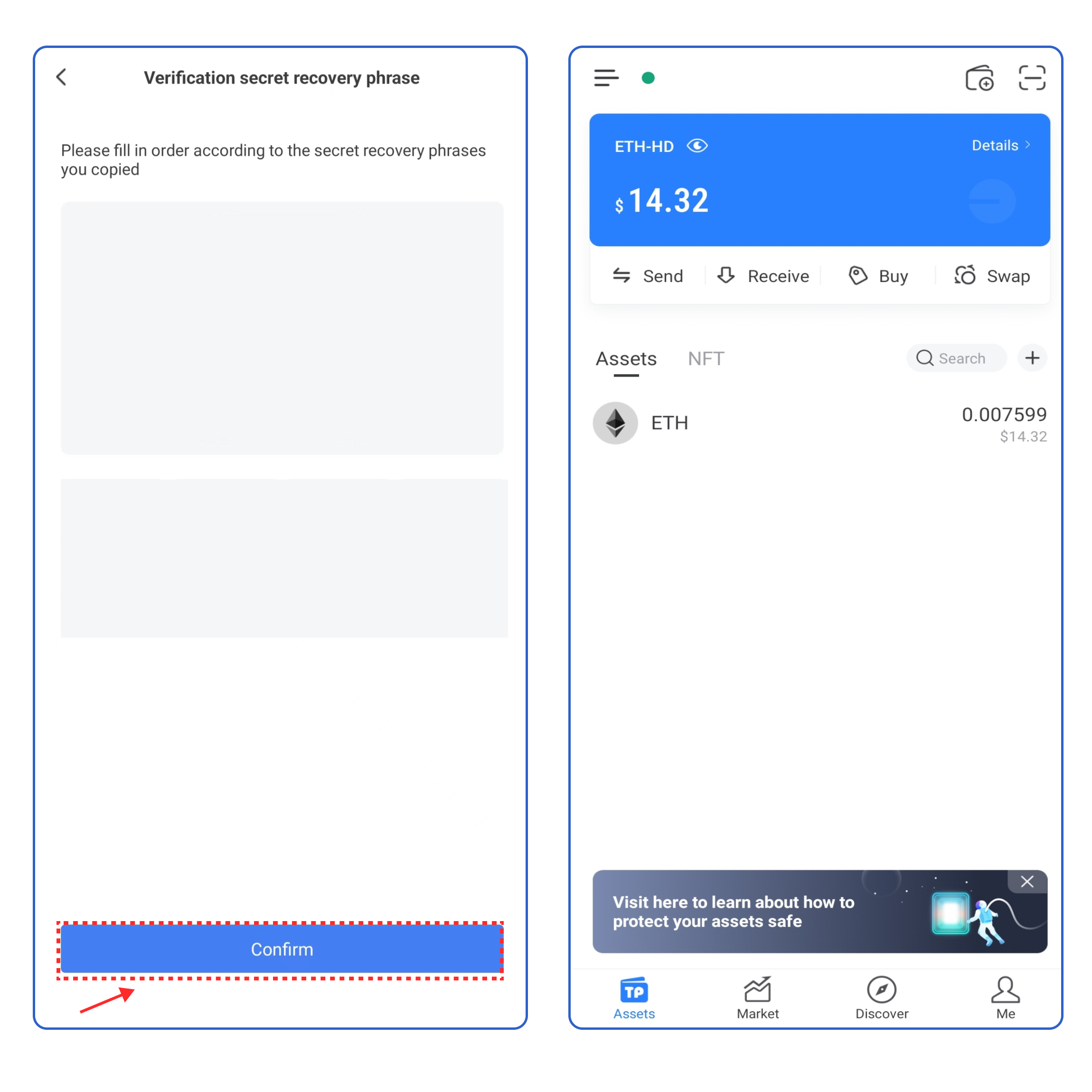 Attention: Do not disclose the private key or secret recovery phrase to the third party!