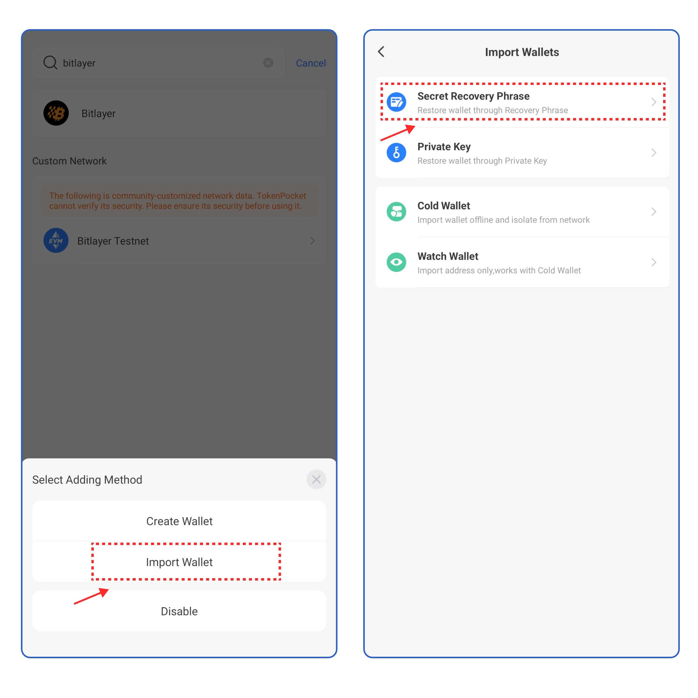 2. Click [Import Wallet], and select the way you want to import your wallet.