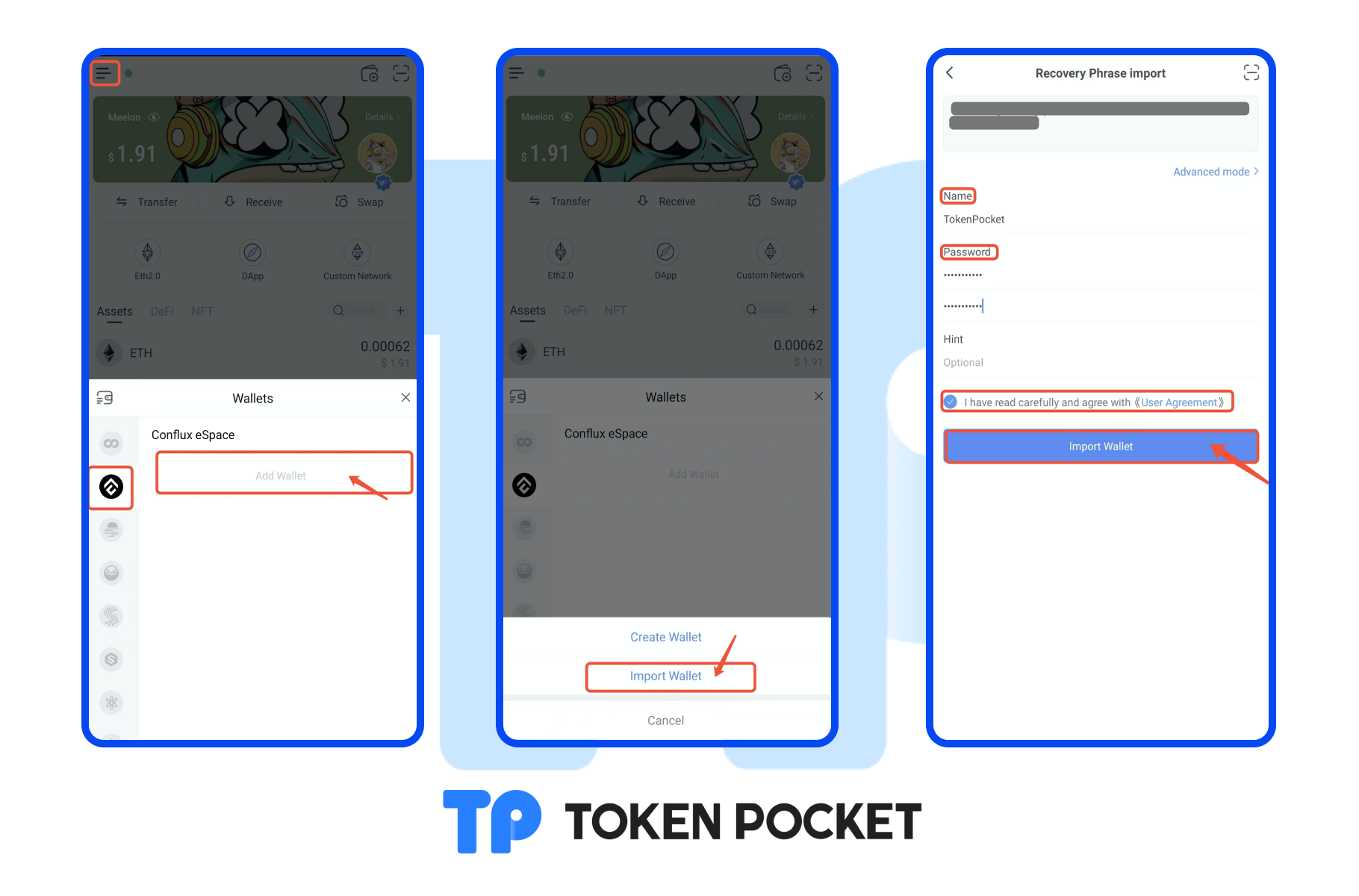 How to import a Conflux eSpace Wallet in TokenPocket?