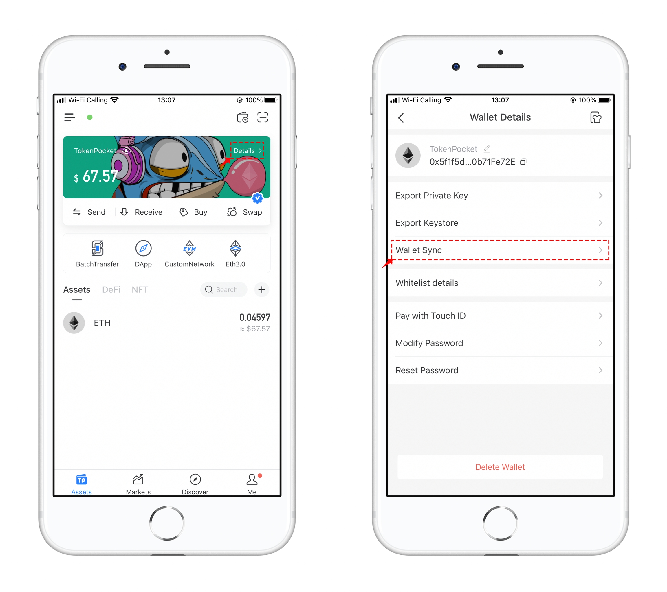 5、After adding the FON Smart Chain, click 【Details】, and select 【Wallet Sync】to select the wallet you want to sync.