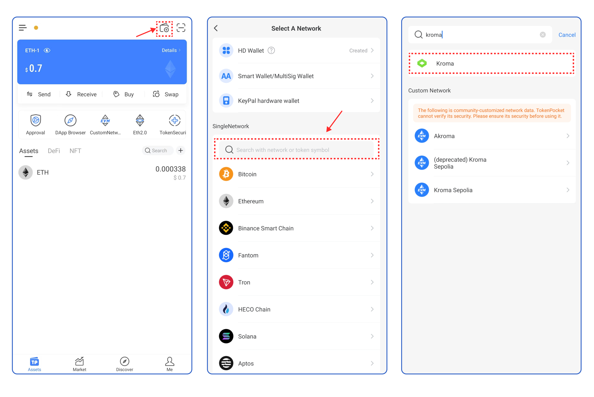 Open TokenPocket Chrome Extension, and click the upper left corner to select the Kroma Network.