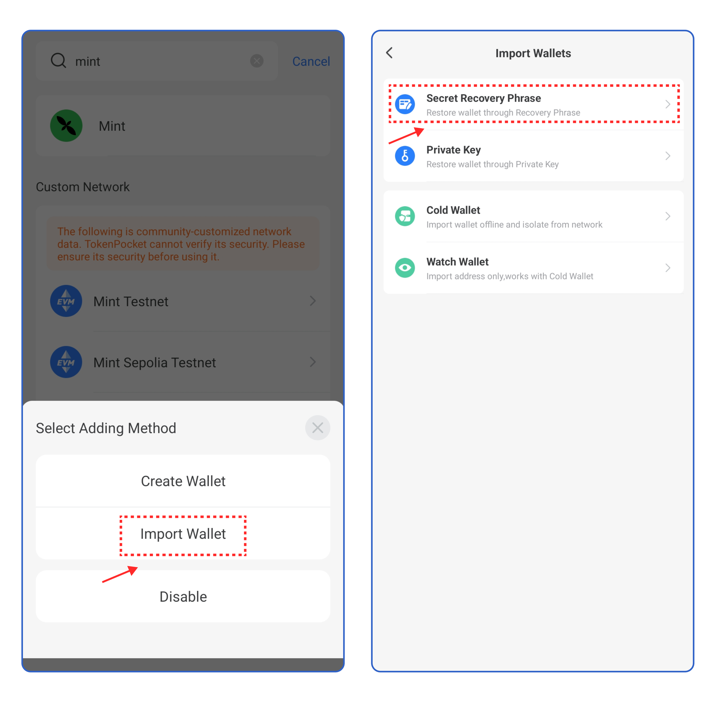 How to import a Mint wallet into TokenPocket?