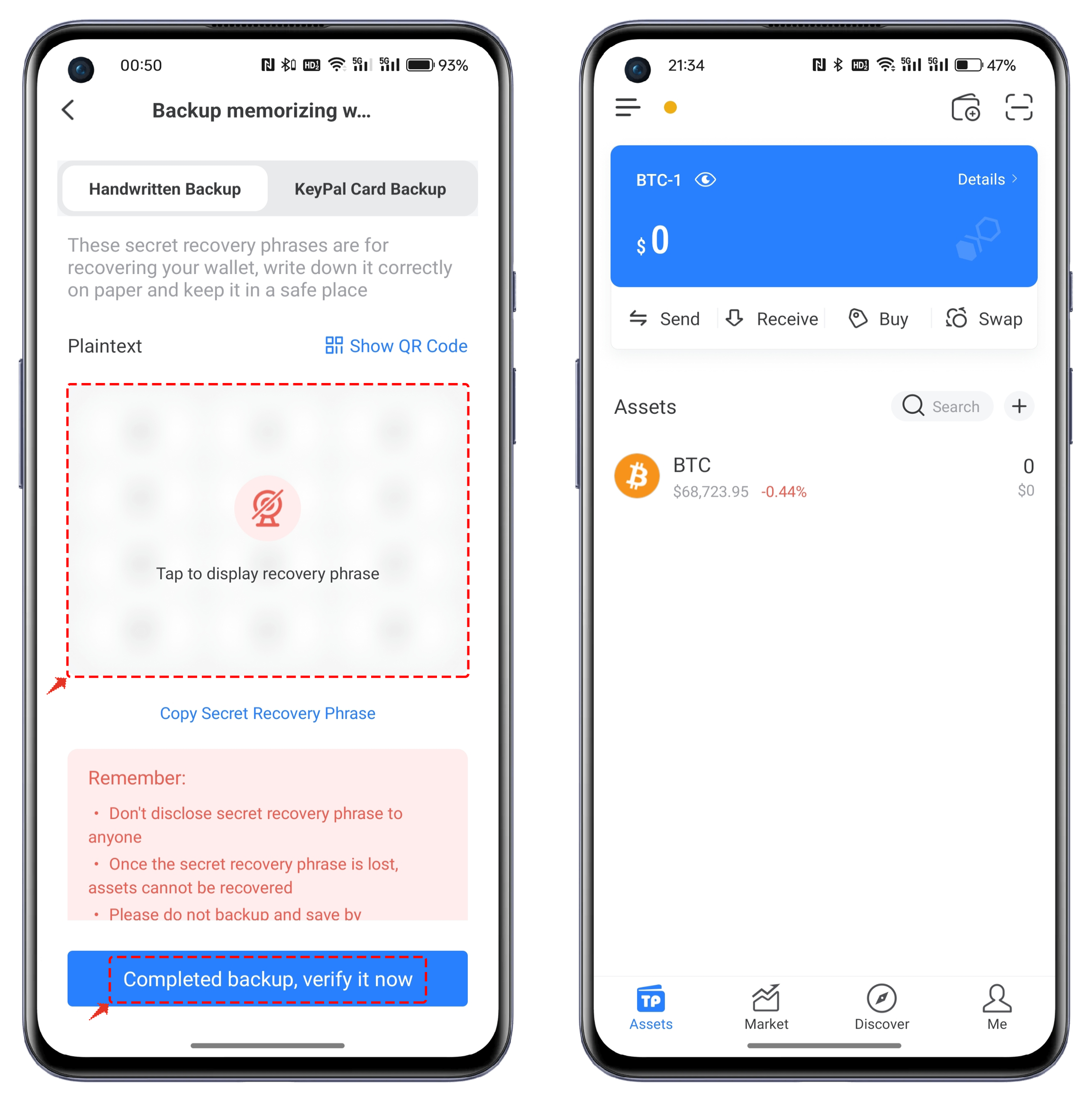 Note: To ensure the security of your funds, do not disclose the mnemonic phrase or private key to anyone!