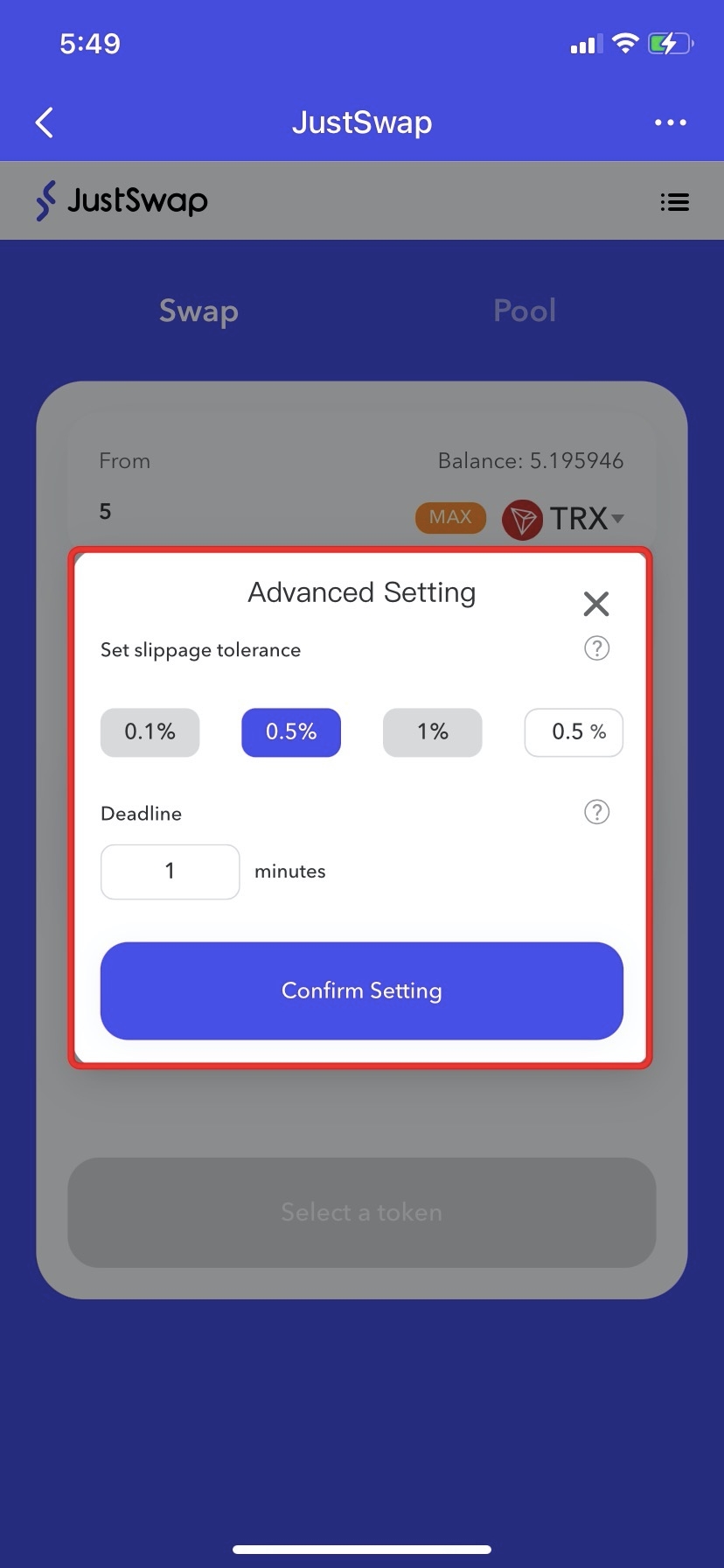 1) Click [Advanced Setting] can set slippage tolerance and swap deadline