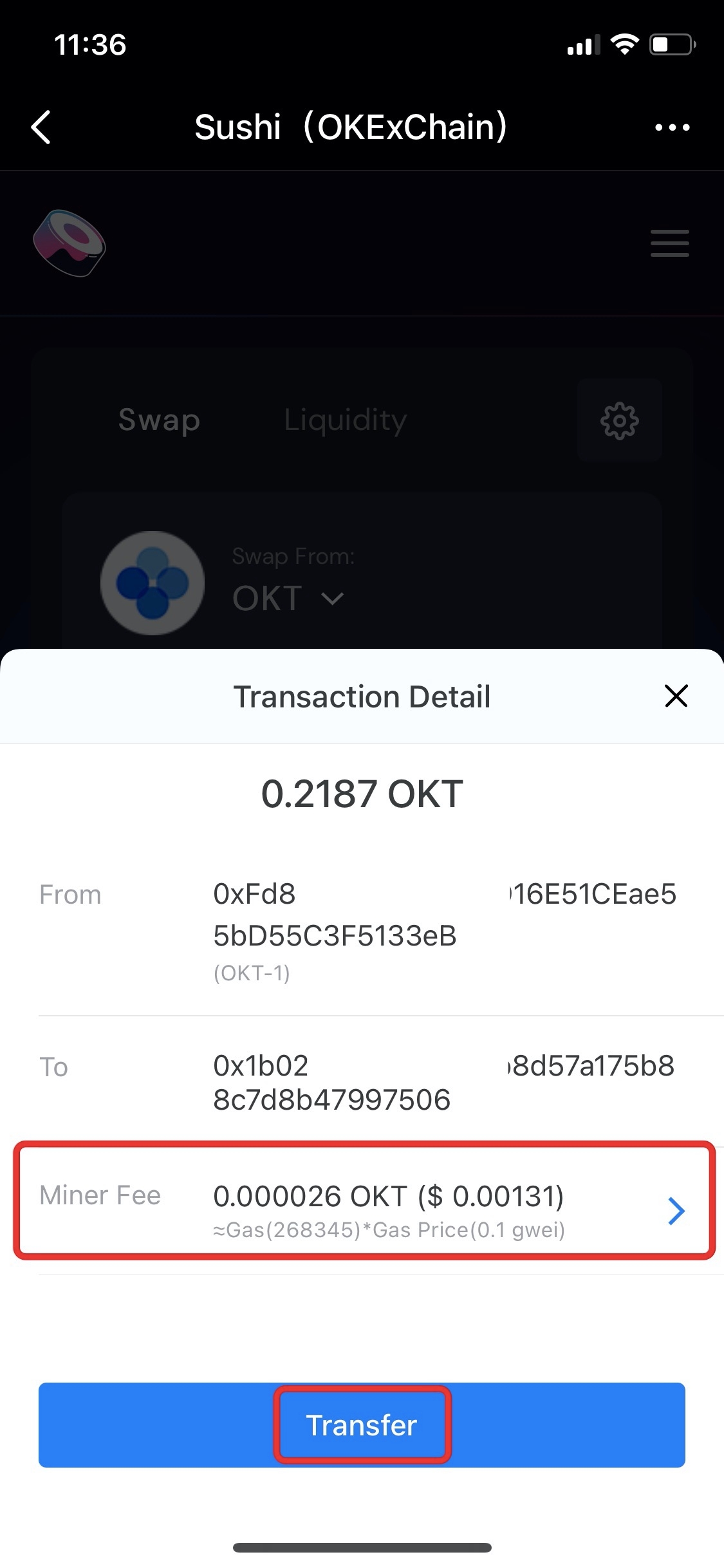 Note: You can adjust the gas fee by clicking the [Miner Fee] to speed up your transaction.