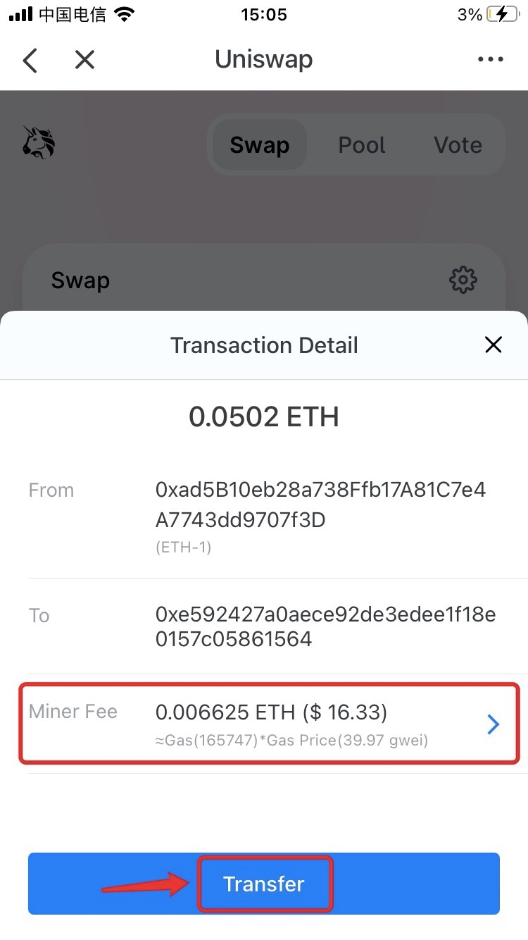 Note: You can click [Miner Fee] to adjust the gas fee for avoding the transaction congested.