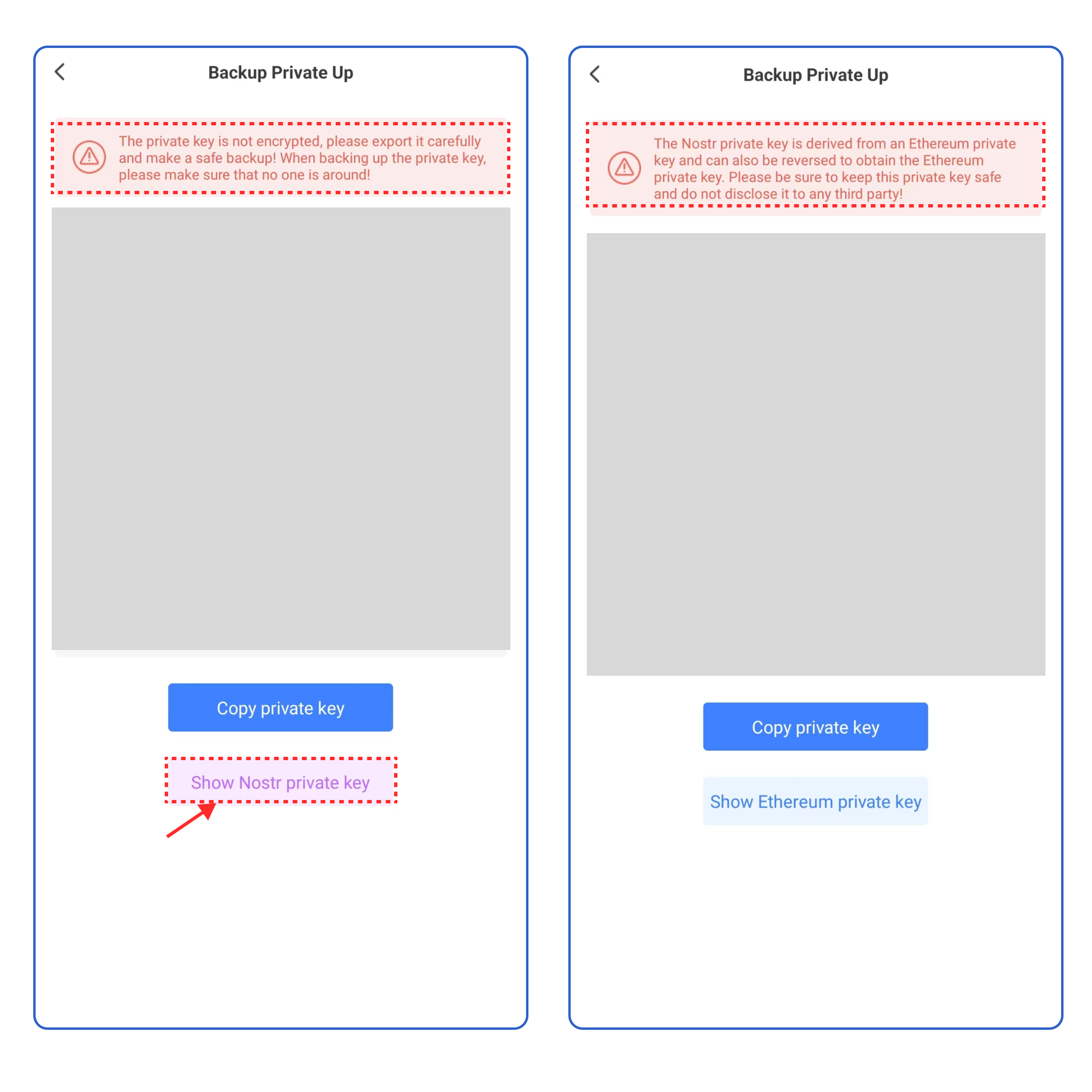 Attention, the Nostr private key is derived from your current evm-based wallet's private key and can also be reversed to obtain the evm-based wallet's private key. Please be sure to keep this private key safe and do not disclose it to any third party!