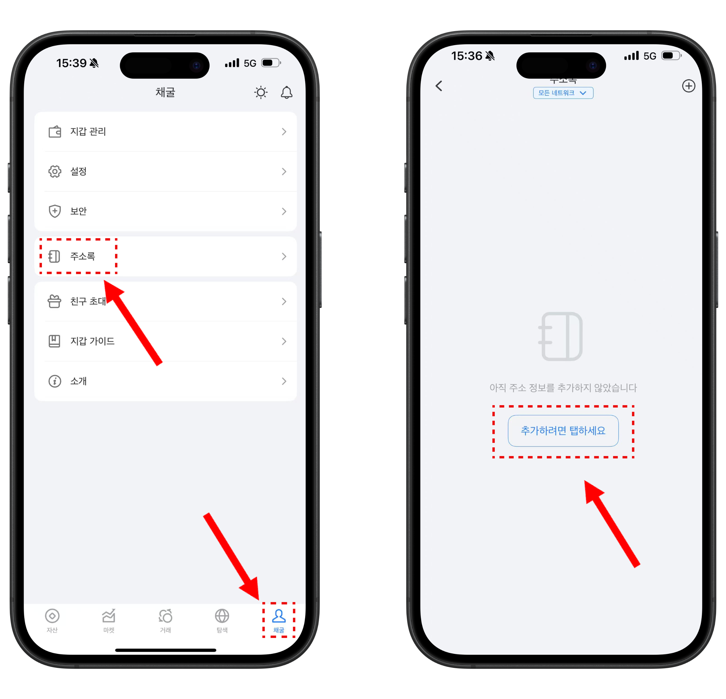 TokenPocket 「채굴」 > 「주소록」 > 「추가하려면 탭하세요」