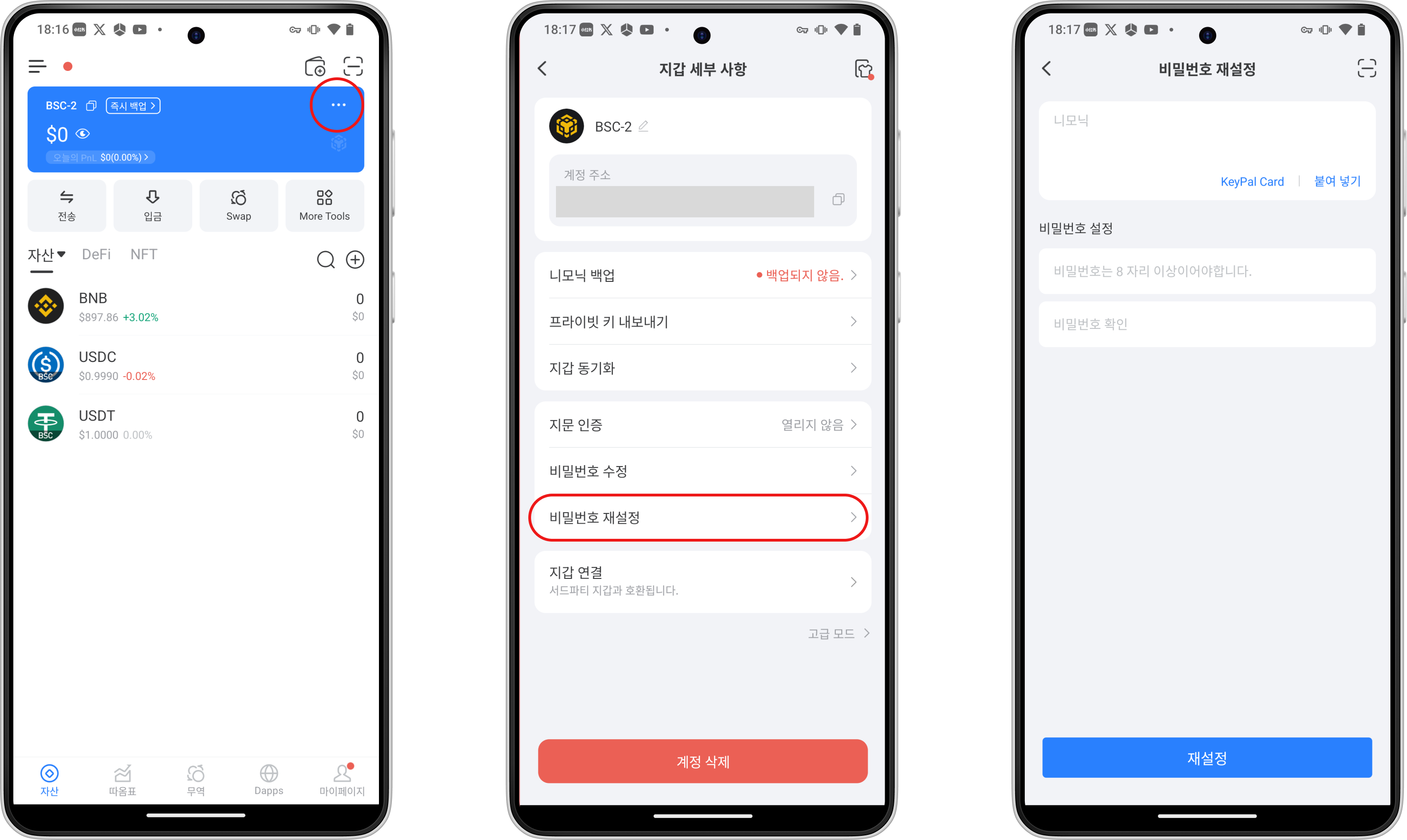 (앱 재설정은 지갑의 모든 로컬 데이터를 삭제한다. 재설정을 수행하기 전에 키가 제대로 백업되었는지 확인하세요.)