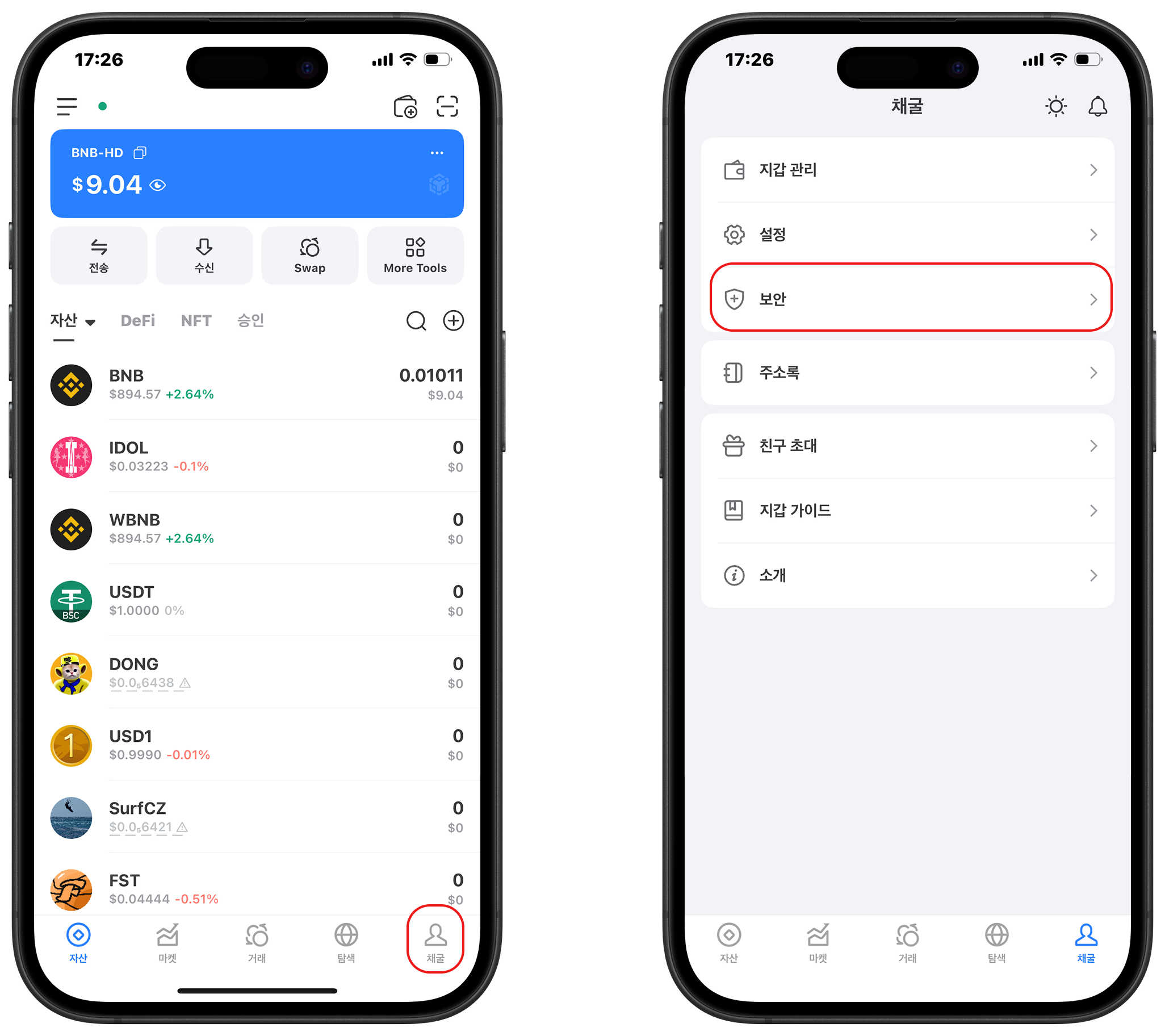 3. 모든 확인이 성공한 후 모든 지갑 주소의 니모닉 구문 또는 개인키를 백업했는지 확인한다. TokenPocket을 열고 나 → 보안 → 앱 재설정으로 이동한다. 재설정 후 백업 키를 사용하여 지갑을 다시 가져온다.