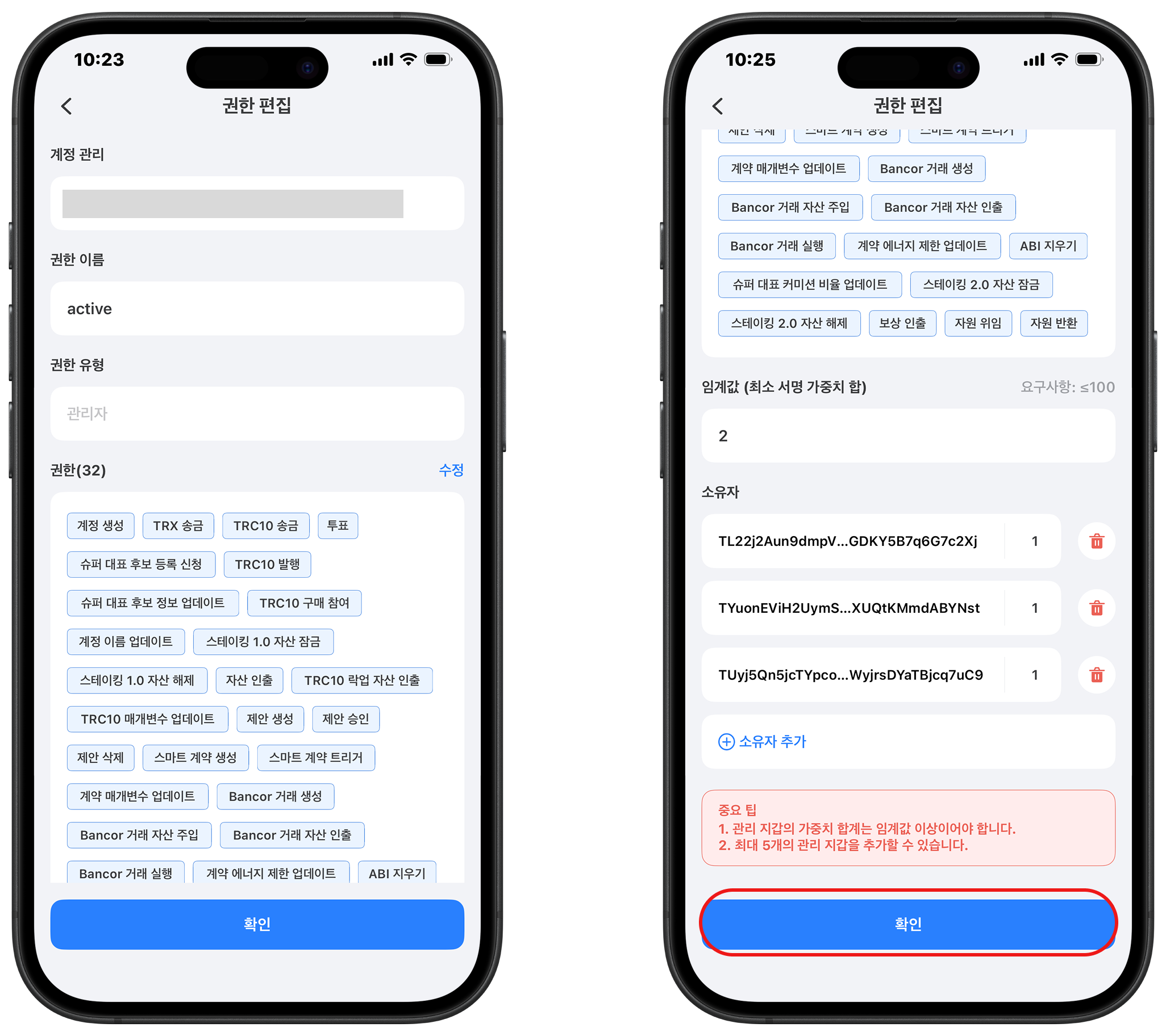 ### <mark style="color:blue;">TRON 지갑 권한 설정 튜토리얼</mark> <a href="#tron-wallet-permission-settings-tutorial" id="tron-wallet-permission-settings-tutorial"></a>