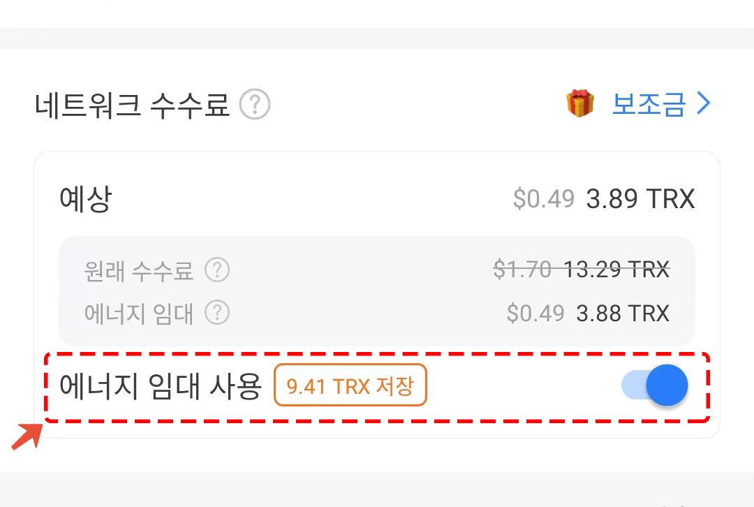 토큰포켓에서 TRX 전송 시 에너지 렌탈 옵션을 선택하면 사용자의 TRX 수수료를 크게 줄일 수 있습니다. 이 프로세스는 완전히 자동화되어 있으며, 해당 기능을 사용하기 위해 옵션을 선택하기만 하면 렌탈 및 온체인 작업이 자동으로 완료됩니다.