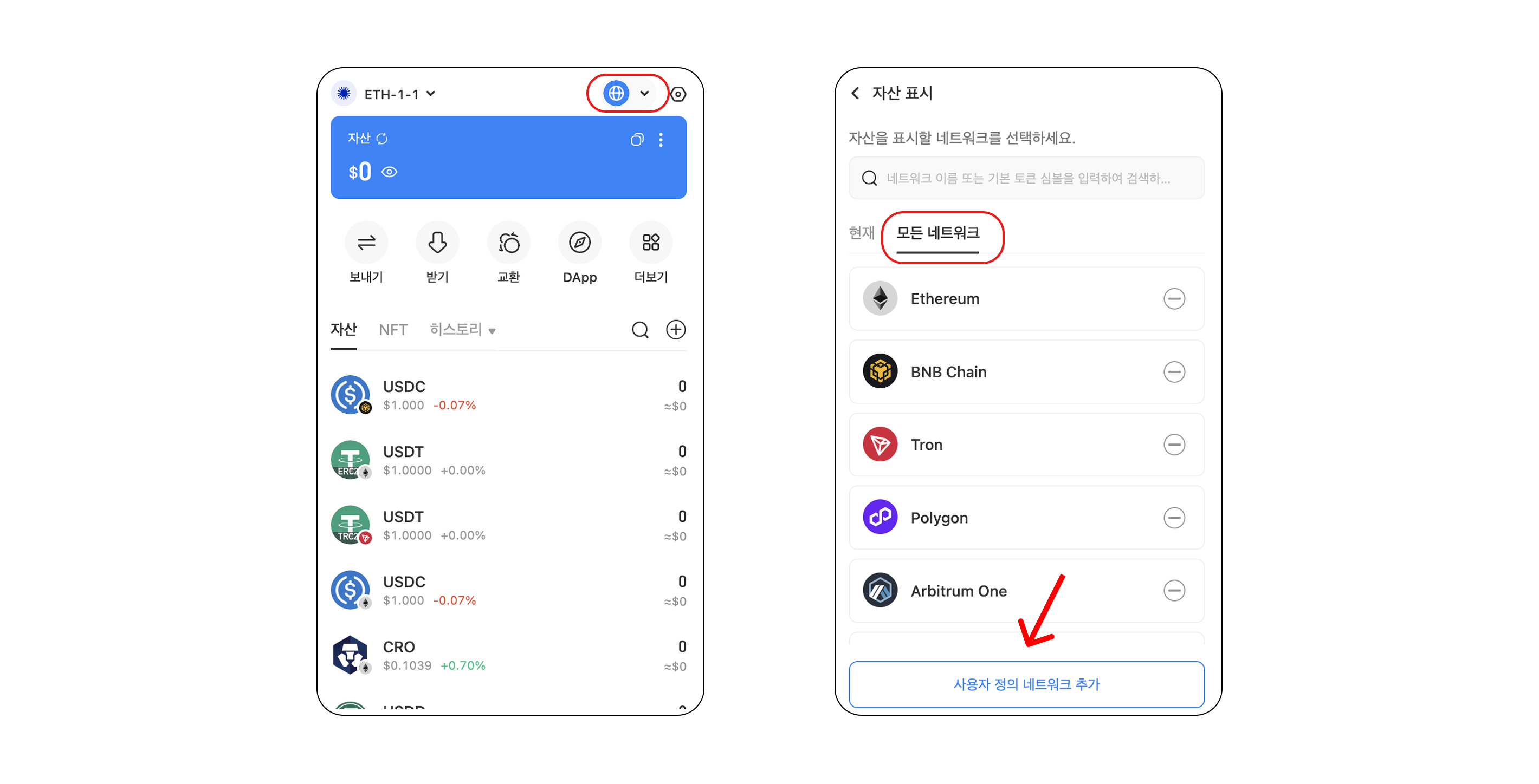 #### <mark style="color:orange;">커스텀 네트워크 추가하기</mark>