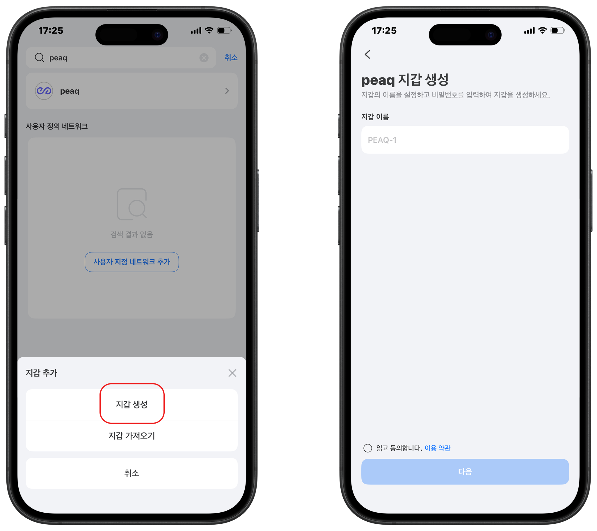 <figure><img src="https://2635091210-files.gitbook.io/~/files/v0/b/gitbook-x-prod.appspot.com/o/spaces%2F-MYDTQZz8SAKtEV8VeYE%2Fuploads%2FNvlY4sPdi196EzbYIu4m%2Fpeaq-createwallet-3.png?alt=media&#x26;token=aa4a2af7-89e4-49a4-a8fb-76cd6284a250" alt=""><figcaption></figcaption></figure>