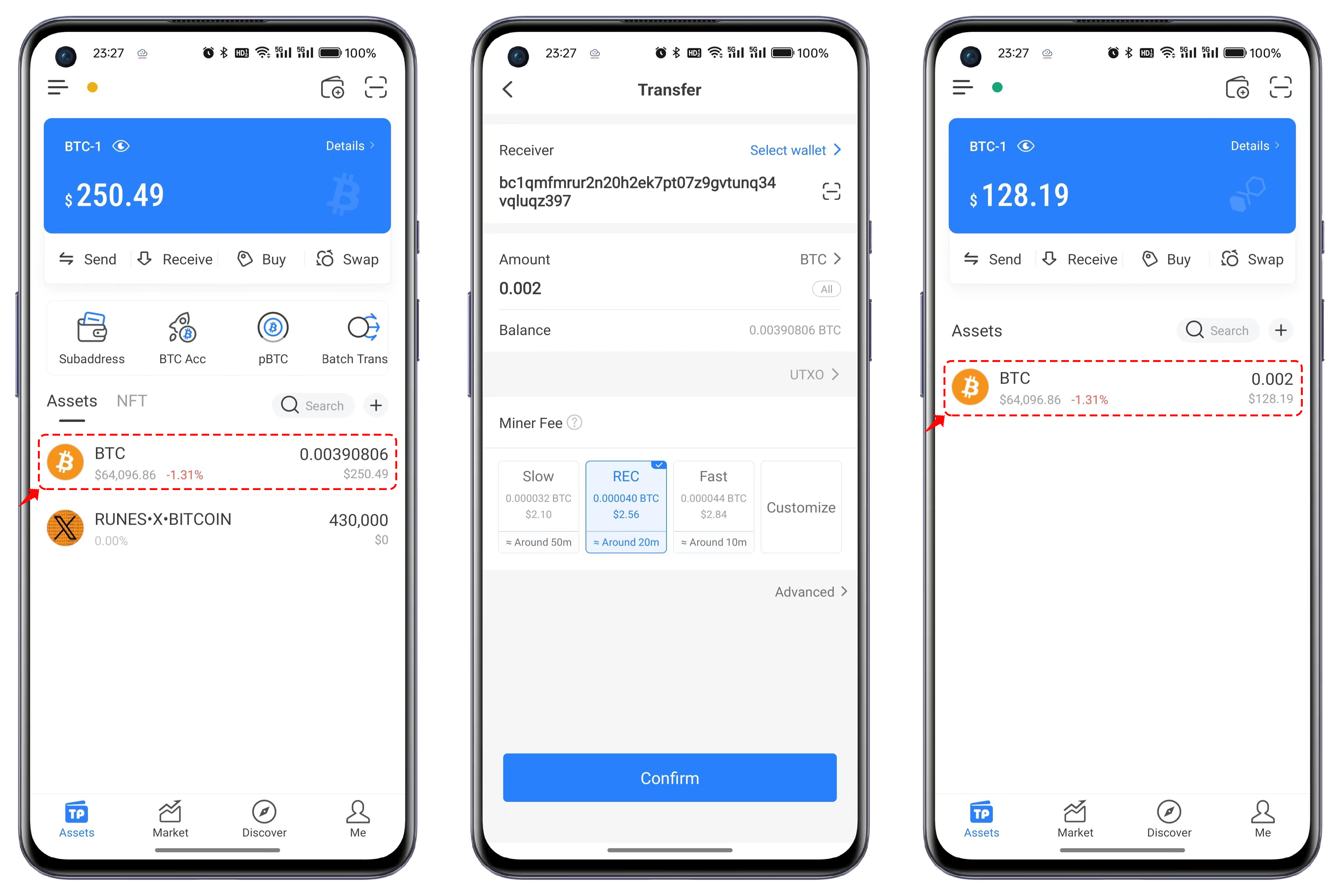 **참고: 전송 중에 RNA와 BTC Gas가 소비되므로 잔액이 충분한지 확인하세요. 그렇지 않으면 전송 단계가 중단되고 전송을 완료할 수 없습니다.**